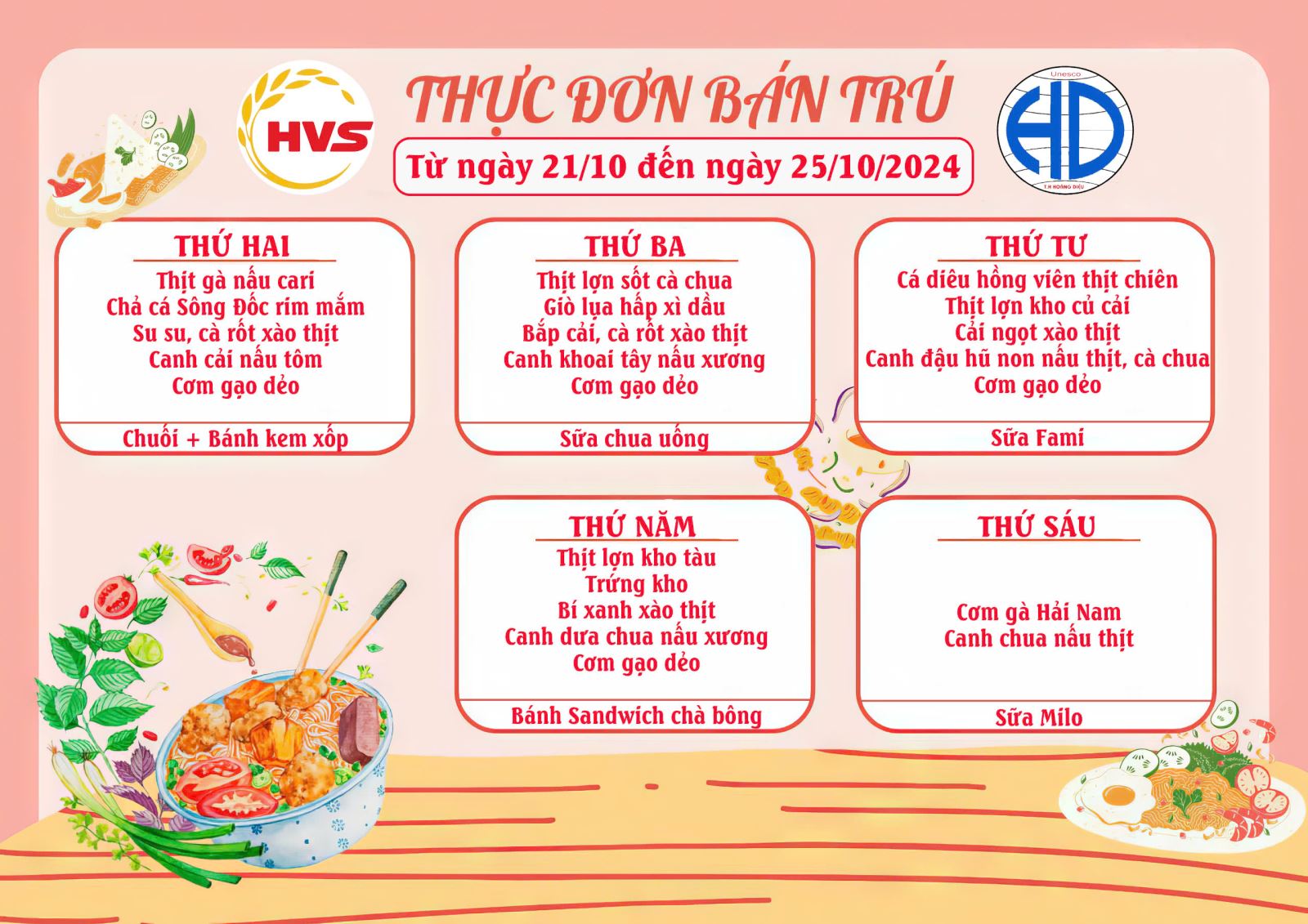 Thực đơn bán trú từ 13/10 đến 17/10/2025