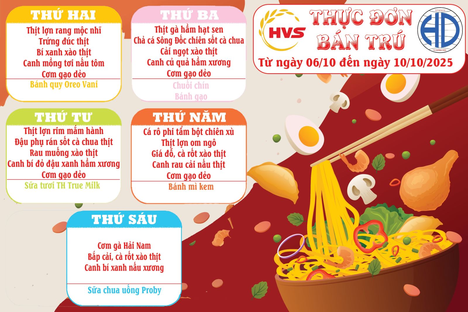 Thực đơn bán trú từ 6/10 đến 10/10/2025