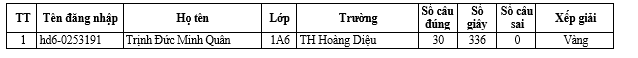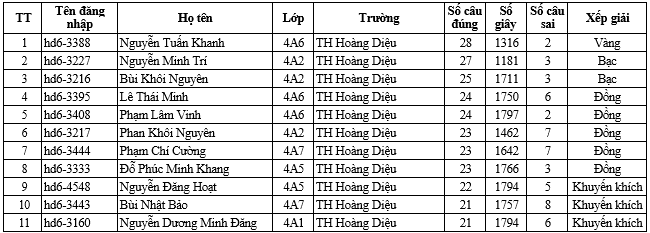 Trường Tiểu học Hoàng Diệu xin chúc mừng các thí sinh nhí của nhà trường đã xuất sắc đạt giải vòng thi cấp Quận sân chơi "Đấu trường Vioedu" trên internet năm học 2024 - 2025.