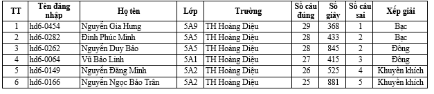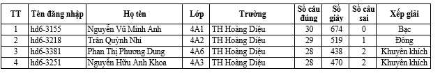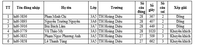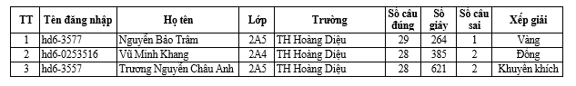 Trường Tiểu học Hoàng Diệu thông báo danh sách học sinh đạt giải vòng thi cấp Quận sân chơi Đấu trường Tiếng Anh Vioedu năm học 2024-2025