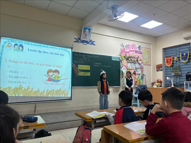 Trường Tiểu học Hoàng Diệu- Quận Ba Đình đang từng bước ứng dụng AI trong dạy học, bằng việc sử dụng các công cụ AI vào nghiên cứu, phân tích, xây dựng bài học, để nội dung thêm sinh động hấp dẫn, tạo cho học sinh hứng thú, dễ tiếp thu bài học và các tiết học diễn ra một cách tự nhiên nhất có thể. Cô giáo Lê Thùy Minh, giáo viên nhà trường cho biết: Ngay từ đầu năm học, Ban giám hiệu nhà trường đã tổ chức tập huấn cho giáo viên về sử dụng các công cụ AI như chat GPT để phân tích nội dung bài học, tìm kiếm những nội dung mới lạ, tạo ý tưởng cho từng slide bài giảng. Sử dụng Slidesgo để tạo ra hàng loạt các slide PowerPoint bài giảng chất lượng. Ngoài ra giáo viên còn sử dụng thêm công cụ Adobe Express để thiết kế các hình ảnh minh hoạ đi kèm với bài đọc. Điều này giúp học sinh hiểu nội dung dễ dàng hơn và thu hút sự chú ý.