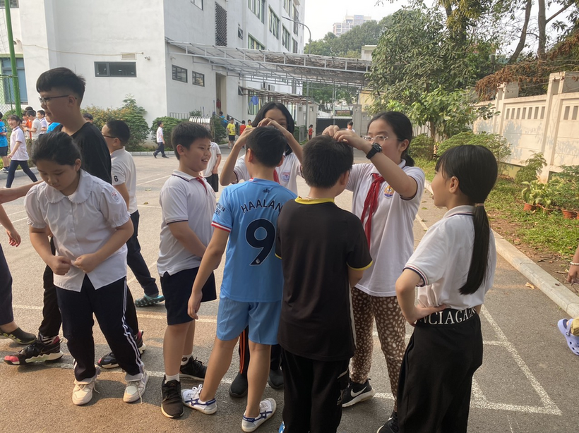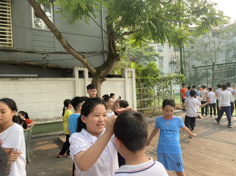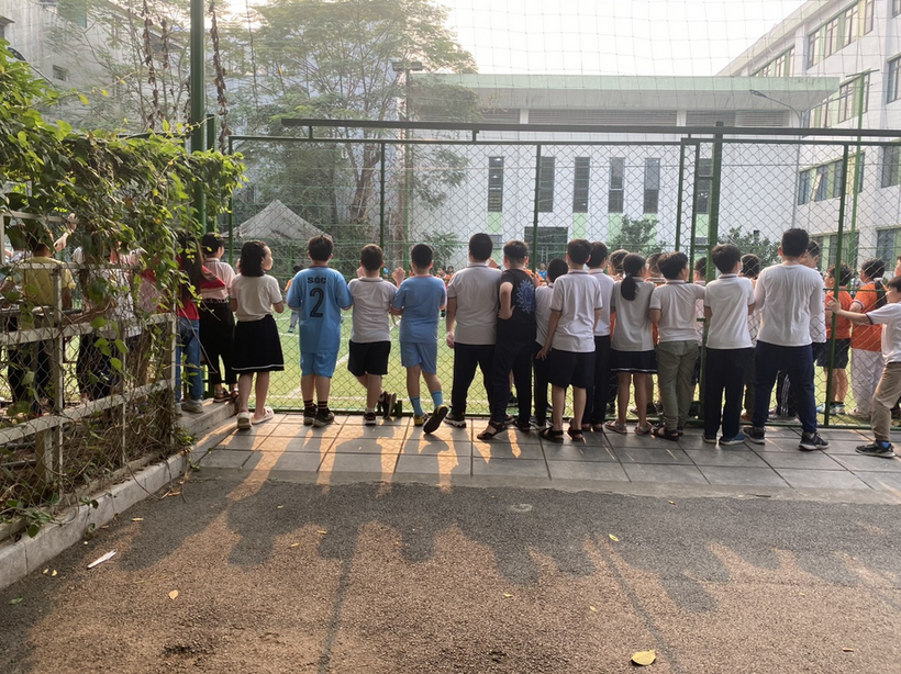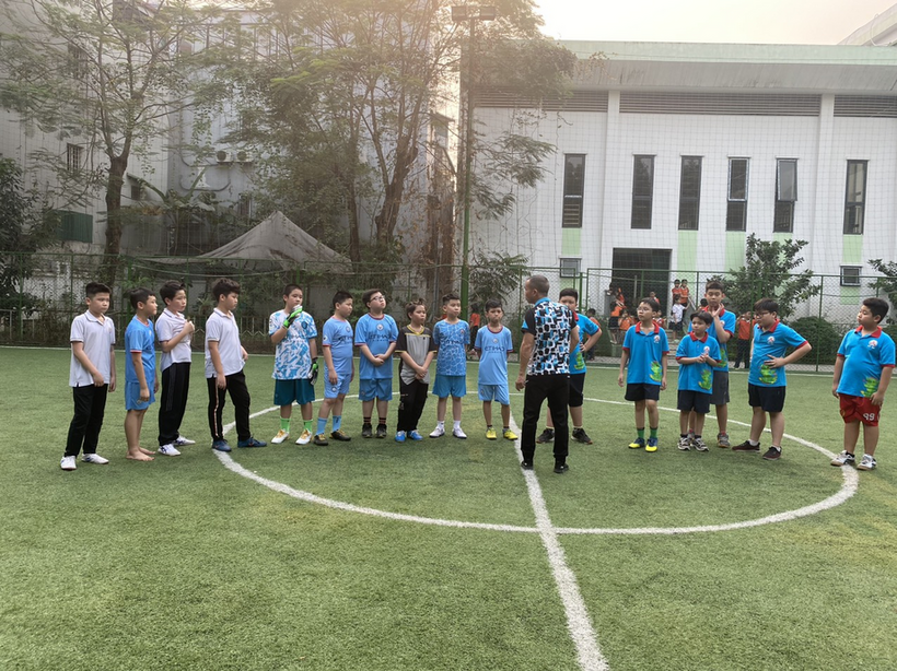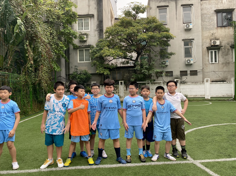 Các cầu thủ tương lai của lớp 5A1 tham gia giải bóng đá của trường.