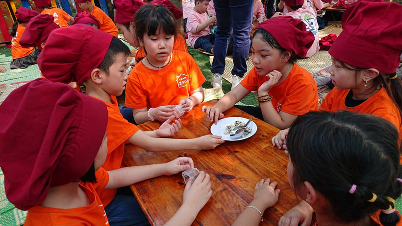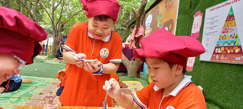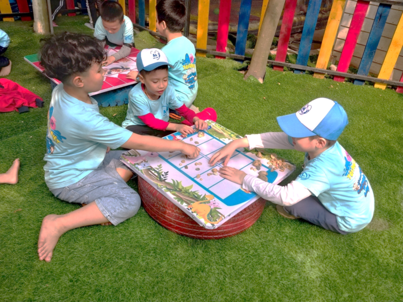 Hoạt động ngoại khóa này giúp các con có thêm những hiểu biết về thiên nhiên, giúp các con thêm yêu quê hương, đất nước. Các con được tham gia các hoạt động theo chủ đề như tìm hiểu các nông cụ truyền thống tại Bảo tàng Nông nghiệp thu nhỏ, thực hành dần, sàng, giã gạo, làm cơm cuộn; tham quan khu chăn nuôi mở với các loài vật nuôi đa dạng; tham gia hoạt động tái chế chai nhựa và làm đầu tên lửa,… Bên cạnh đó còn có các trò chơi vận động rèn luyện sức khỏe theo nhiều hình thức thú vị như thám hiểm “Đường hầm bí mật”, “nhà bóng liên hoàn”, trượt cỏ trên đồi, leo núi hay thử thách mạo hiểm cùng Sasuke… Sau đó, các con được tham gia hoạt động tập thể trên sân khấu, diễn thời trang theo chủ đề “Lễ hội năm châu”.
