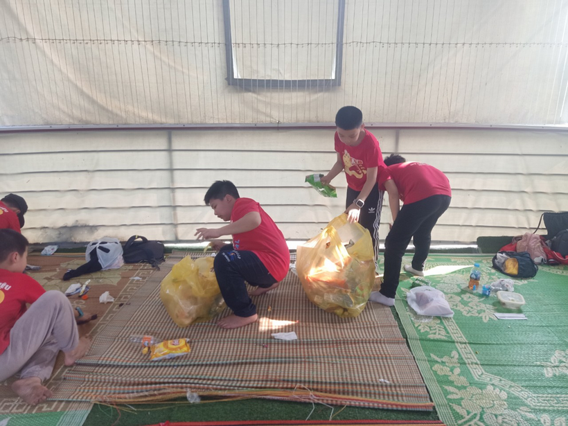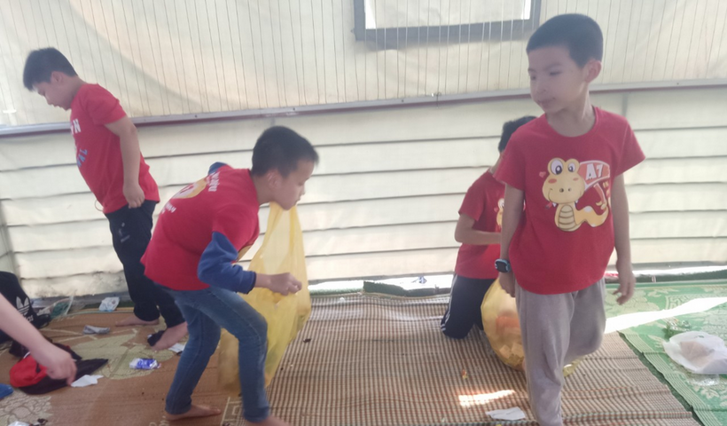 Một hình ảnh đẹp trước khi ra về, các em đã tự giác thu gom rác thải bảo vệ môi trường.