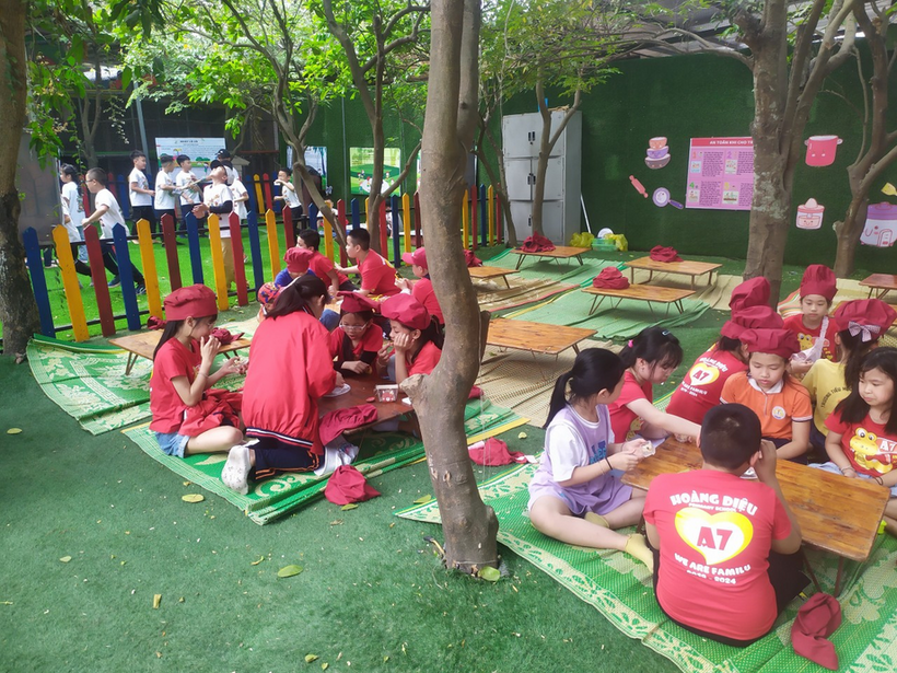 Tại đây, các bạn nhỏ đã có những giờ phút hòa mình vào không gian xanh mát của cây cối, sự trong lành của thiên nhiên và thư giãn sau những ngày học bằng các trò chơi thú vị.