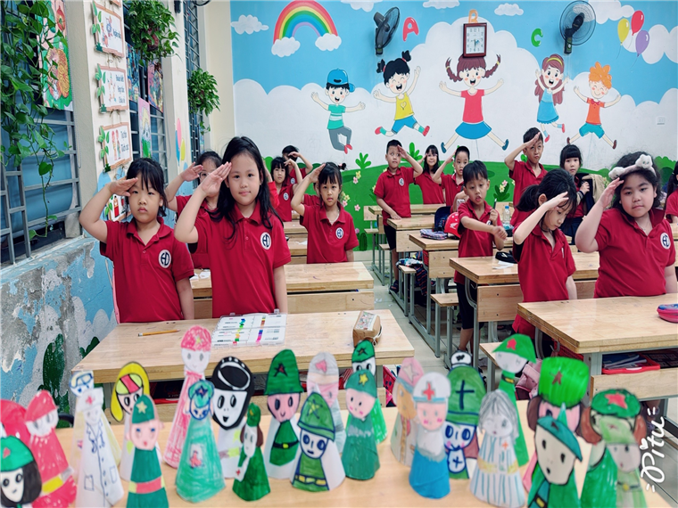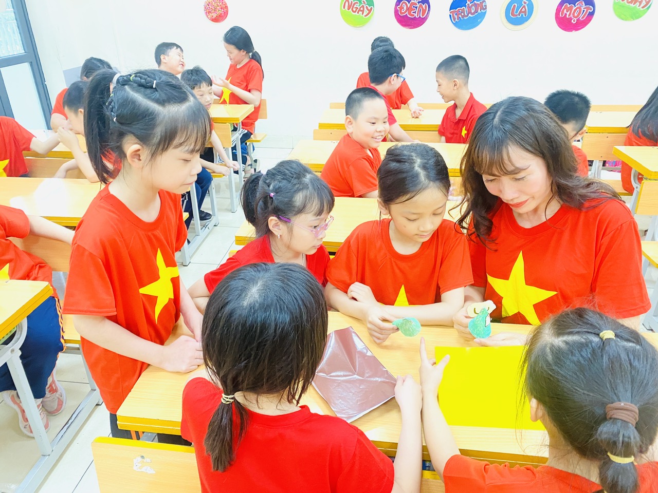 Khi được hướng dẫn làm các sản phẩm mỹ thuật để chào mừng ngày lễ này, học sinh trường tiểu học Hoàng Diệu không chỉ học hỏi thêm về lịch sử mà còn gửi gắm tình cảm và suy nghĩ của mình qua từng nét vẽ, màu sắc và sản phẩm sáng tạo.