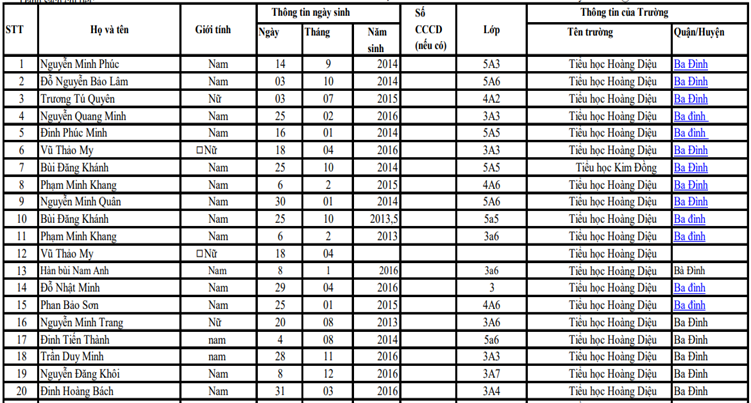 Danh sách Học sinh tham gia thi vòng sơ loại Tin học Quốc tế IC3