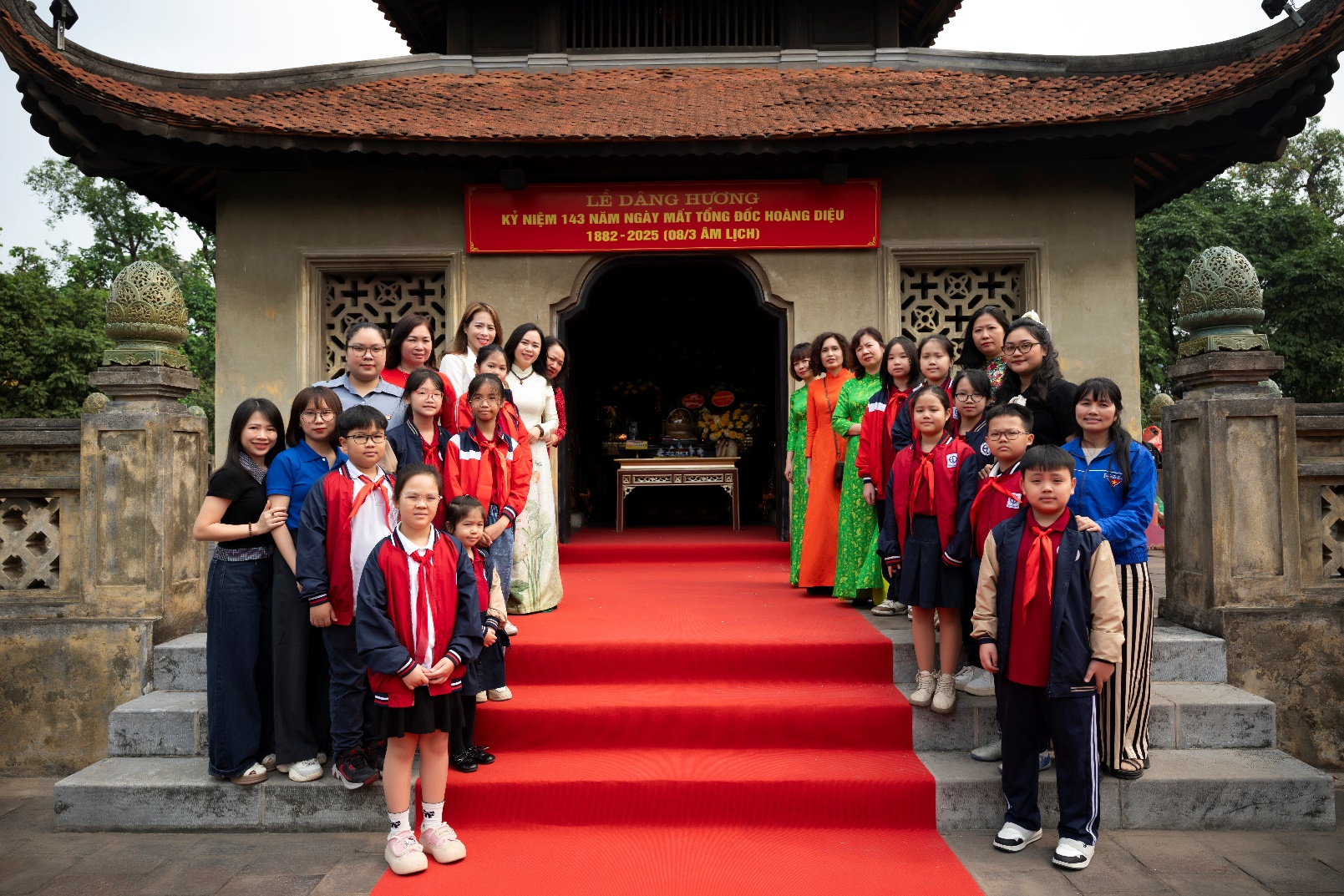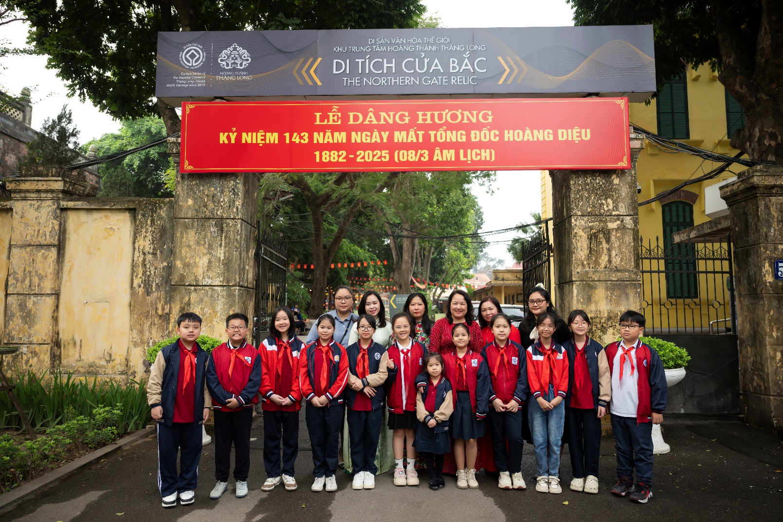 Sáng ngày 04/4/2025, Cô và trò trường Tiểu học Hoàng Diệu làm lễ dâng hương tưởng niệm 143 năm ngày mất Tổng đốc Hoàng Diệu tại di tích Bắc Môn (khu di sản Hoàng thành Thăng Long).