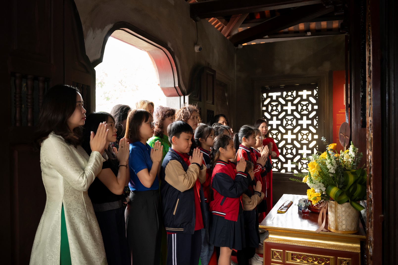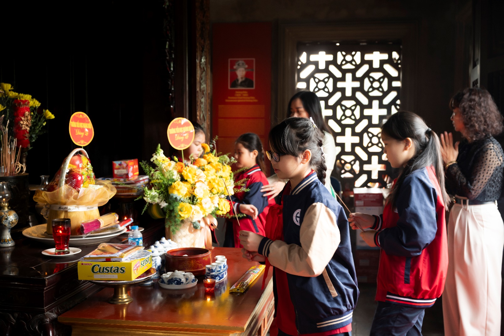 Cô và trò trường TH Hoàng Diệu làm lễ dâng hương tưởng niệm