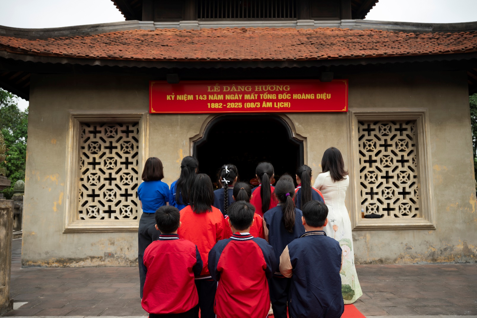 Cứ mỗi độ tháng Tư hàng năm, tiếp bước truyền thống Uống nước nhớ nguồn của trường TH Hoàng Diệu. Sáng ngày 04/4/2025, BGH nhà trường cùng đại diện Giáo viên và các con học sinh trường TH Hoàng Diệu tổ chức dâng hương tại nơi thờ Cụ Hoàng Diệu tại Hoàng Thành Thăng Long. Xin kính dâng lên Tổng đốc Hoàng Diệu nhưng nén Tâm Hương, những tấm lòng tri ân của thầy và trò trường TH Hoàng Diệu.