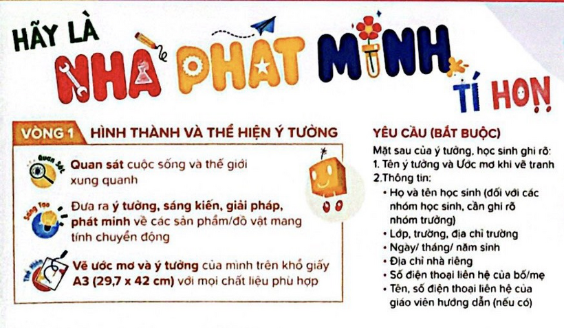 Hình thức tham gia: Học sinh vẽ ước mơ và ý tưởng của mình trên khổ giấy A3 (29,7 x 42cm) với mọi chất liệu phù hợp.