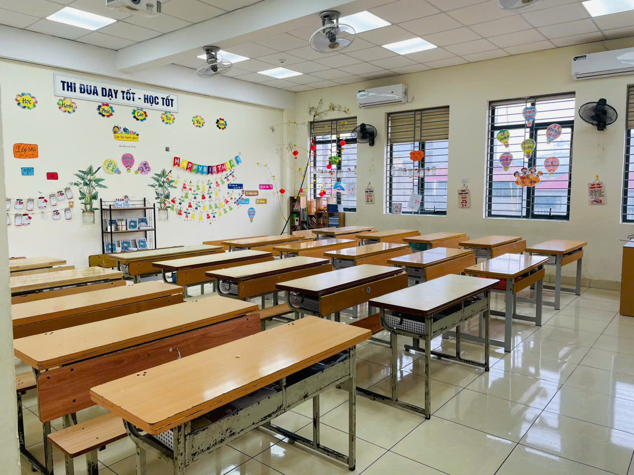 Không gian lớp học sạch sẽ, gọn gàng sau khi vệ sinh