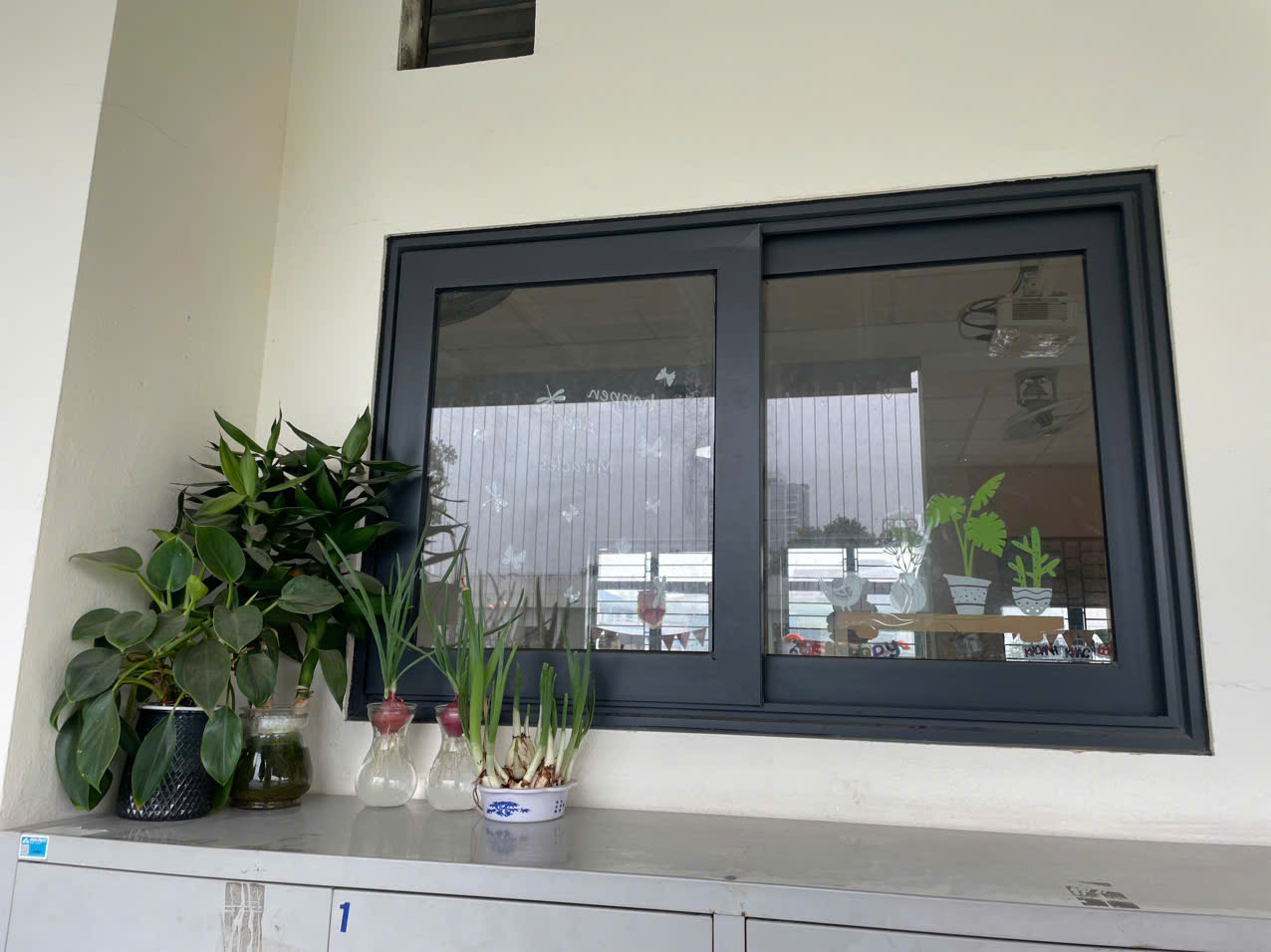 Cửa sổ được đóng kín, các chậu cây được xếp gọn tránh đổ