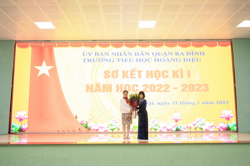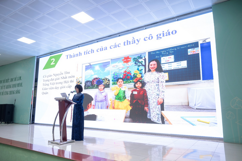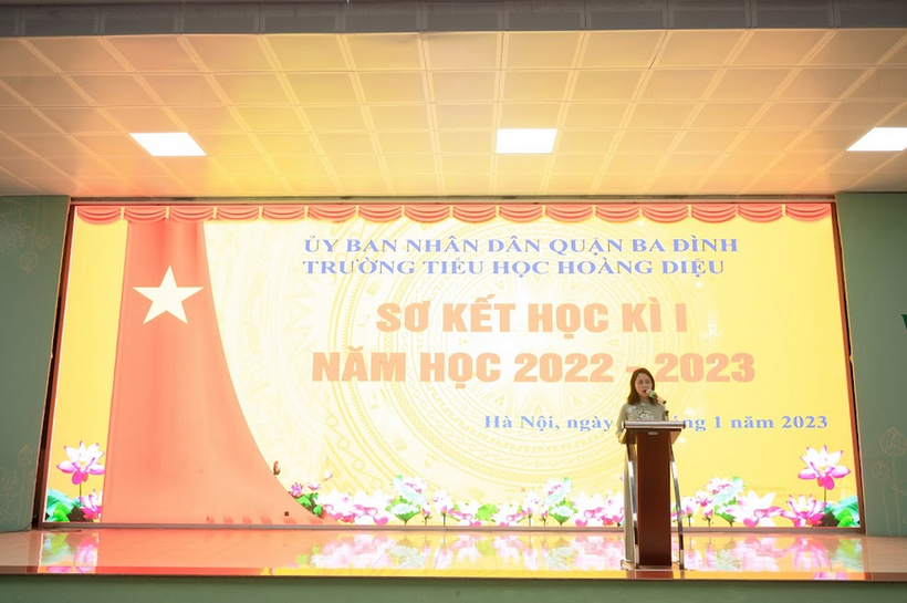 Trong buổi lễ sơ kết, cô giáo Trần Thị Tố Trinh – Phó Hiệu trưởng nhà trường đã tổng kết lại những kết quả mà nhà trường đã đạt được trong học kì I năm học 2022-2023.