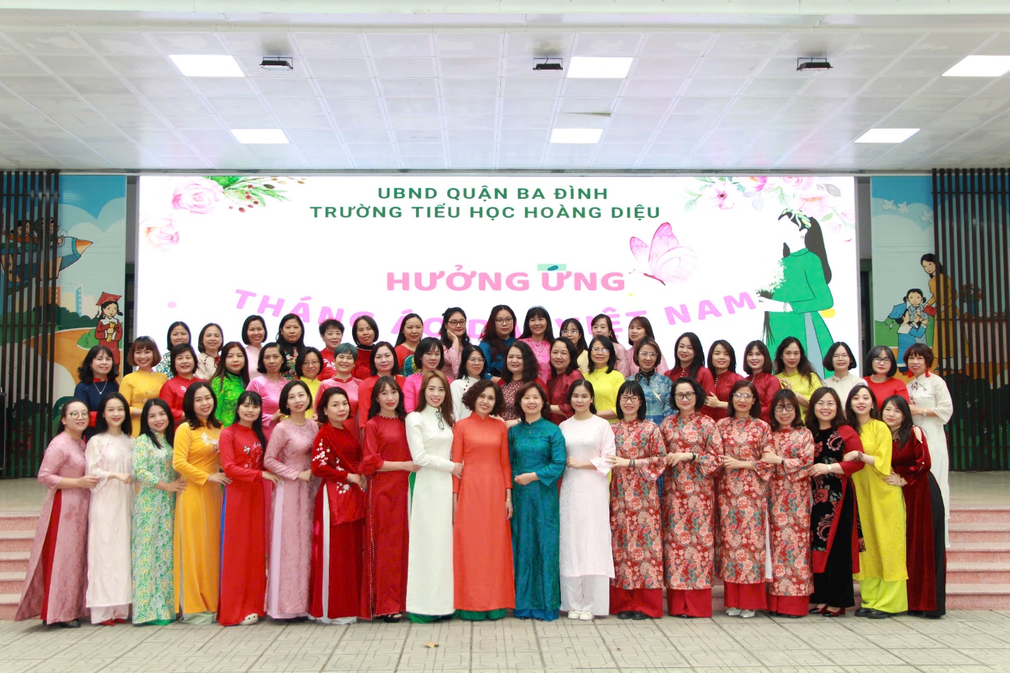 Hướng tới kỷ niệm Ngày Quốc tế Phụ nữ 8/3, tập thể Cán bộ, giáo viên, nhân viên và học sinh trường Tiểu học Hoàng Diệu nhiệt tình hưởng ứng "Tuần lễ Áo dài năm 2025", tạo nên một bức tranh rực rỡ sắc màu, tôn vinh vẻ đẹp của người phụ nữ Việt Nam trong tà áo dài truyền thống.