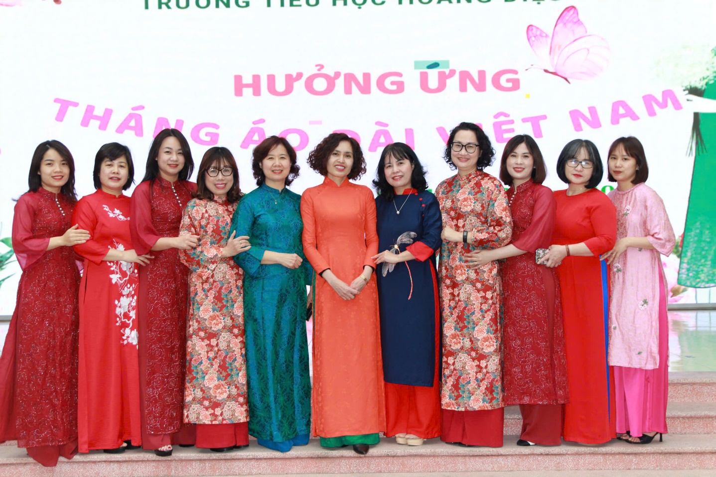 Tập thể nữ cán bộ - giáo viên – nhân viên trường TH Hoàng Diệu tỏa sáng trong tà áo dài