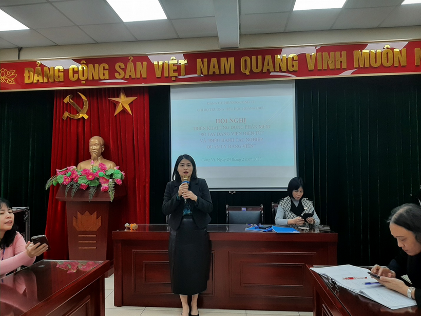 Sáng ngày 24 tháng 2, tại Phòng họp đồng chí Nguyễn Thanh Huyền – Phó bí thư Chi bộ trường Tiểu học Hoàng Diệu đã triển khai Kế hoạch số 121-KH/TU ngày 22/12/2022 của Ban Thường vụ Thành ủy Hà Nội về việc triển khai và ứng dụng phần mềm “Sổ tay đảng viên điện tử” thuộc Đảng bộ thành phố Hà Nội và phần mềm “Điều hành tác nghiệp quản lý đảng viên”.