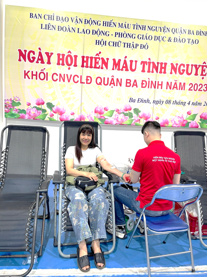 Theo Kế hoạch số 107/KH-BCĐ ngày 16/01/2023 của Ban Chỉ đạo vận động Hiến máu tình nguyện quận Ba Đình về việc tổ chức phong trào hiến máu tình nguyện quận Ba Đình năm 2023. Với thông điệp “MỖI GIỌT MÁU CHO ĐI, MỘT CUỘC ĐỜI Ở LẠI”, Ban chấp hành Công đoàn trường Tiểu học Hoàng Diệu tổ chức tuyên truyền, vận động công nhân viên chức tham gia đăng ký và trực tiếp hiến máu tình nguyện.