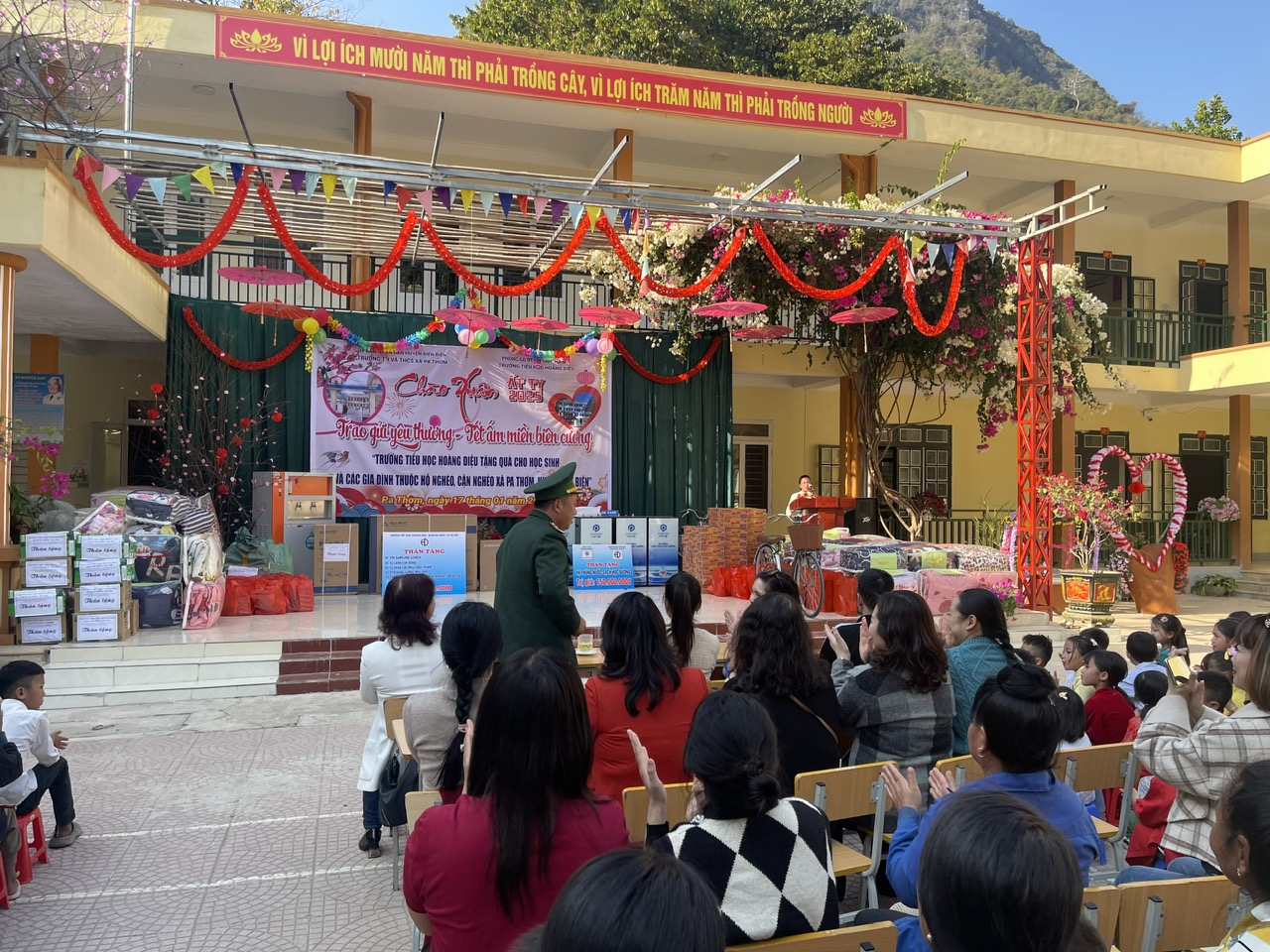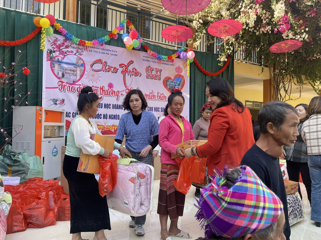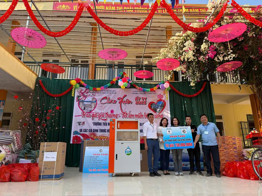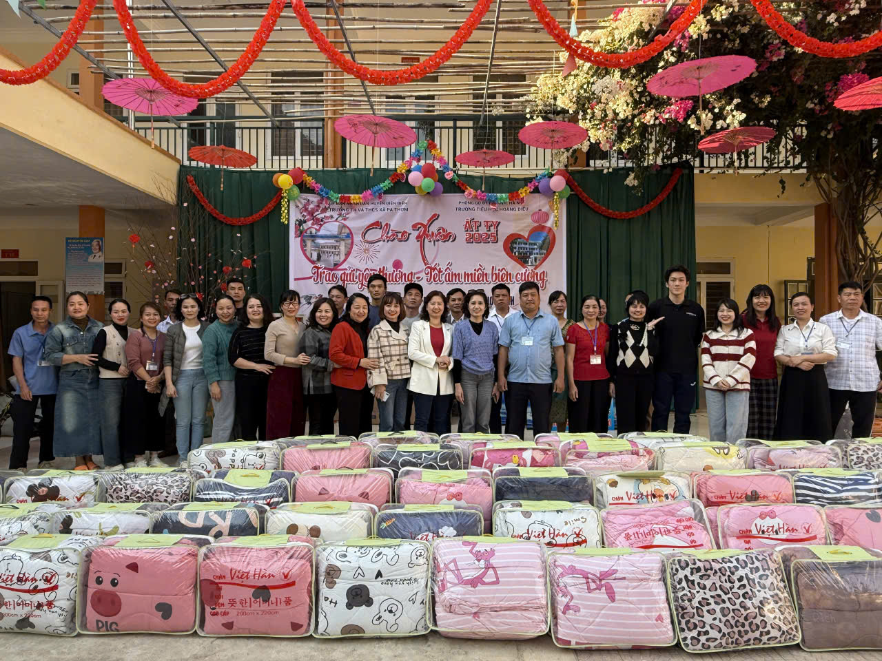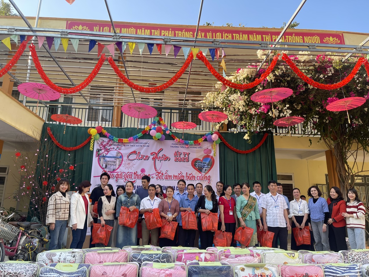 Với tấm lòng sẻ chia và mong muốn mang lại niềm vui cho các em nhỏ tại trường Mầm non, Tiểu học và THCS Pa Thơm cùng các thầy cô giáo và bà con thuộc hộ nghèo, cận nghèo nơi đây, đoàn trường Tiểu học Hoàng Diệu đã trao tận tay những món quà chan chứa tình yêu thương. Những phần quà không chỉ bao gồm các thiết bị cần thiết như hệ thống nước sạch học đường, ti vi, đèn năng lượng mặt trời, tủ lạnh, tủ cấp đông, mà còn có các nhu yếu phẩm, sữa, bánh kẹo, quần áo, chăn ấm mùa đông,… tổng trị giá quà tặng 236 770 000 đồng – tất cả đều chứa đựng tấm lòng chân thành của tập thể nhà trường và các phụ huynh học sinh Thủ đô. Những món quà ấy mang theo thông điệp yêu thương và niềm hy vọng về một tương lai tươi sáng cho các em – những mầm xanh của biên cương Tổ quốc.