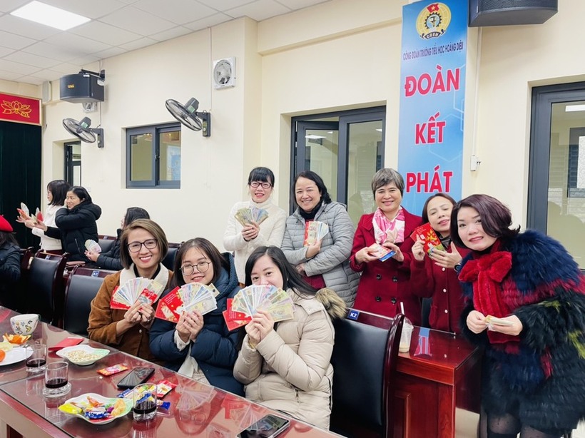 Ban Giám Hiệu và cán bộ giáo viên nhân viên nhà trường đã lần lượt trao những phong bao lì xì may mắn cùng những lời chúc Tết đầu xuân mang không khí vui vẻ, phấn khởi trong ngày đi làm đầu tiên của năm mới. Chương trình gặp mặt với những câu chúc của bạn bè đồng nghiệp bên những ly rượu vang chúc năm mới thành công. Buổi “ Gặp mặt đầu năm” khép lại trong niềm hứng khởi của tất cả những người tham gia. Với nụ cười tươi rói trên môi, có lẽ tất cả những thành viên của ngôi nhà trường Tiểu học Hoàng Diệu đều tin tưởng vào một năm mới – thắng lợi mới!