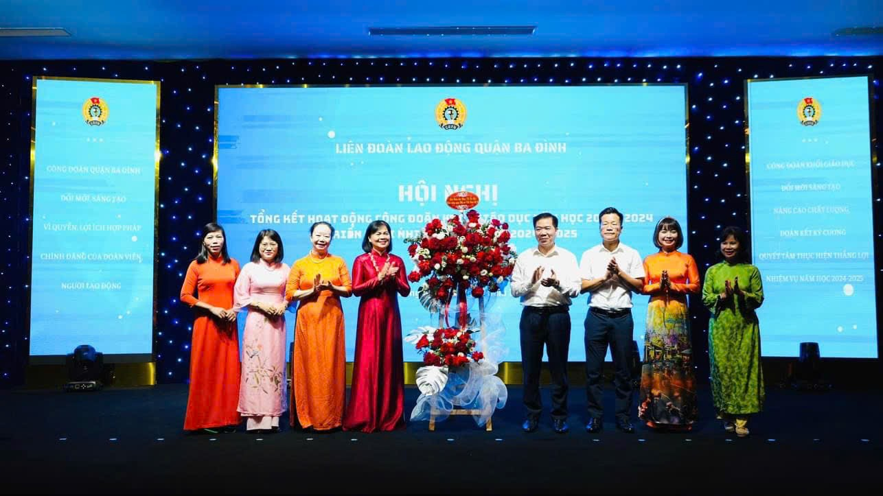 Sáng 18/10/ 2014, Liên đoàn Lao động quận Ba Đình tổ chức Hội nghị tổng kết hoạt động Công đoàn khối Giáo dục và Triển khai nhiệm vụ trọng tâm năm học 2024 - 2025 . Tham dự Hội nghị có đồng chí Nguyễn Huy Khánh - phó chủ tịch LĐLĐ thành phố, đồng chí Lê Đức Thuận – Trưởng phòng Giáo dục và Đào tạo quận Ba Đình, các đồng chí Hiệu trưởng, Hiệu phó các nhà trường và toàn thể các đồng chí Chủ tịch Công đoàn của các cơ sở đến tham dự đông đủ.