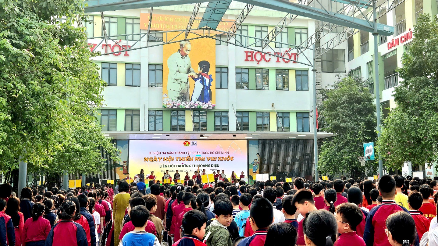 Sáng ngày 24/3, tại sân trường Tiểu học Hoàng Diệu, không khí sôi động và tràn đầy nhiệt huyết đã bao trùm toàn bộ khuôn viên trường khi thầy trò cùng nhau tham gia “Ngày hội Thiếu nhi vui khỏe”. Sự kiện đặc biệt này được tổ chức nhằm kỷ niệm 94 năm ngày thành lập Đoàn Thanh niên Cộng sản Hồ Chí Minh (26/3/1931 - 26/3/2025), đồng thời giúp các em học sinh rèn luyện thể chất, nâng cao ý thức về sức khỏe và tinh thần đoàn kết.