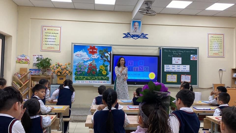Học sinh lớp 1 tự tin biểu diễn sắm vai trong tiết học được cô giáo khen ngợi động viên.