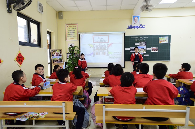 Học sinh Lớp 5 tự tin thuyết trình trong tiết học.