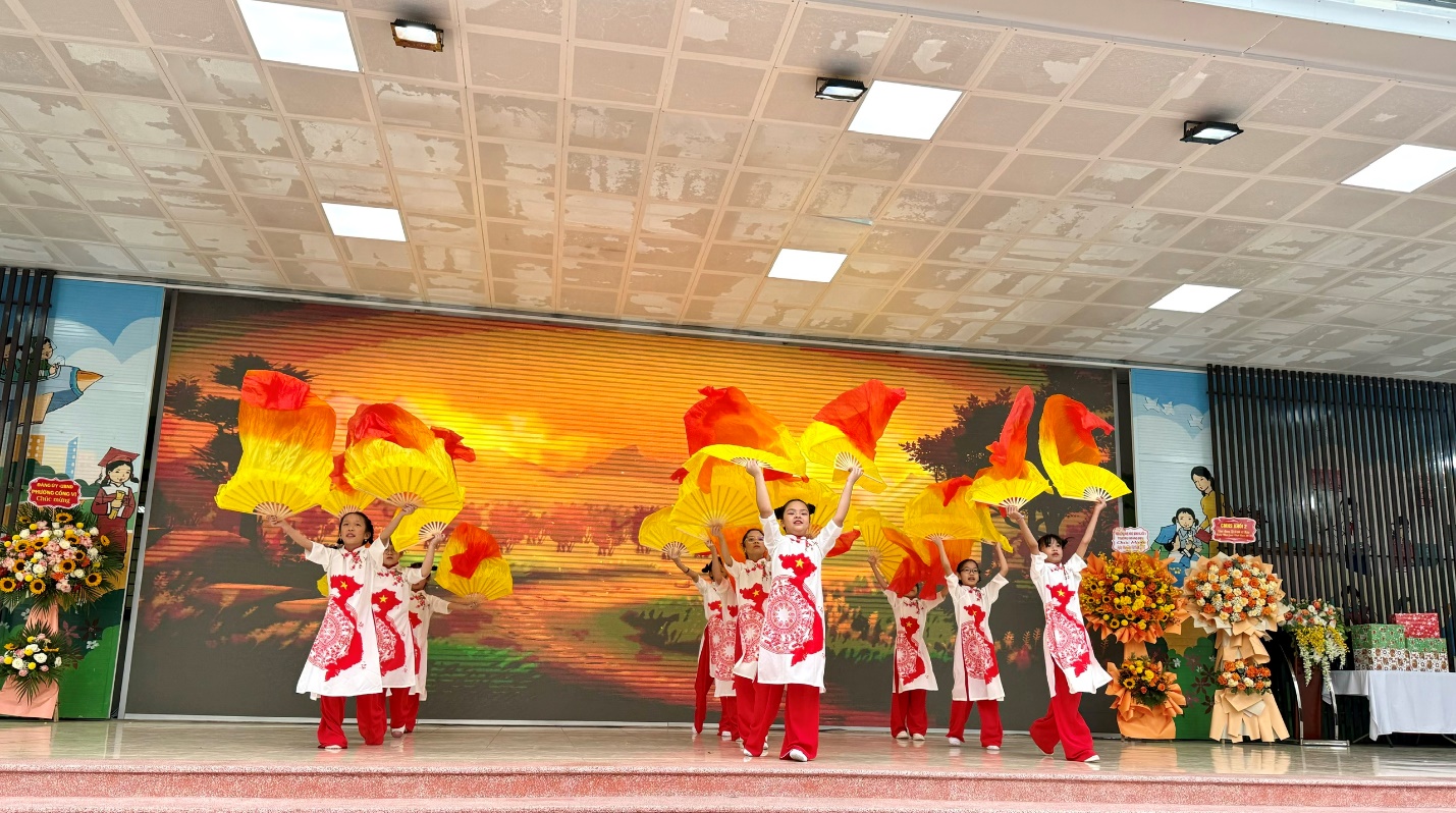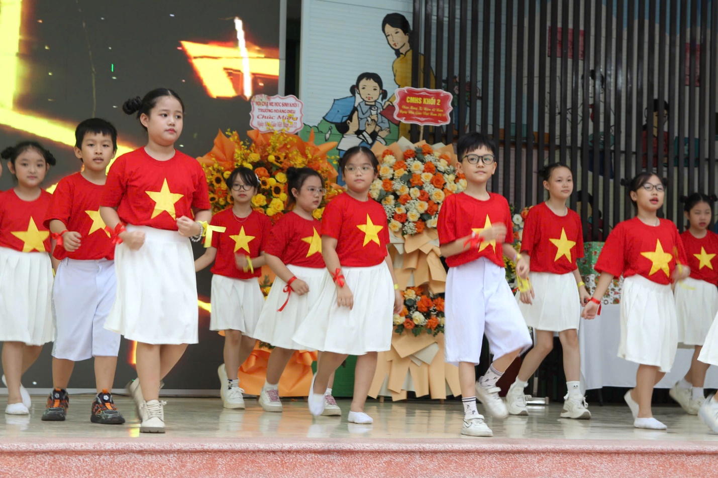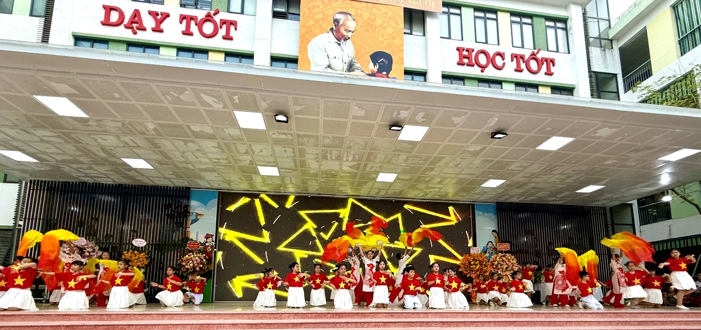 Đặc biệt ấn tượng là tiết mục mashup múa "Rực rỡ Việt Nam" kết hợp với bài nhảy “Năng động Việt Nam" của các con học sinh khối 4. Sự kết hợp độc đáo này không chỉ mang đến một tiết mục sôi động, mà còn thể hiện tình yêu quê hương đất nước của các em học sinh. Những bước nhảy uyển chuyển, những động tác mạnh mẽ, cùng với những trang phục áo cờ đỏ sao vàng đã tạo nên một bức tranh sinh động về vẻ đẹp Việt Nam.