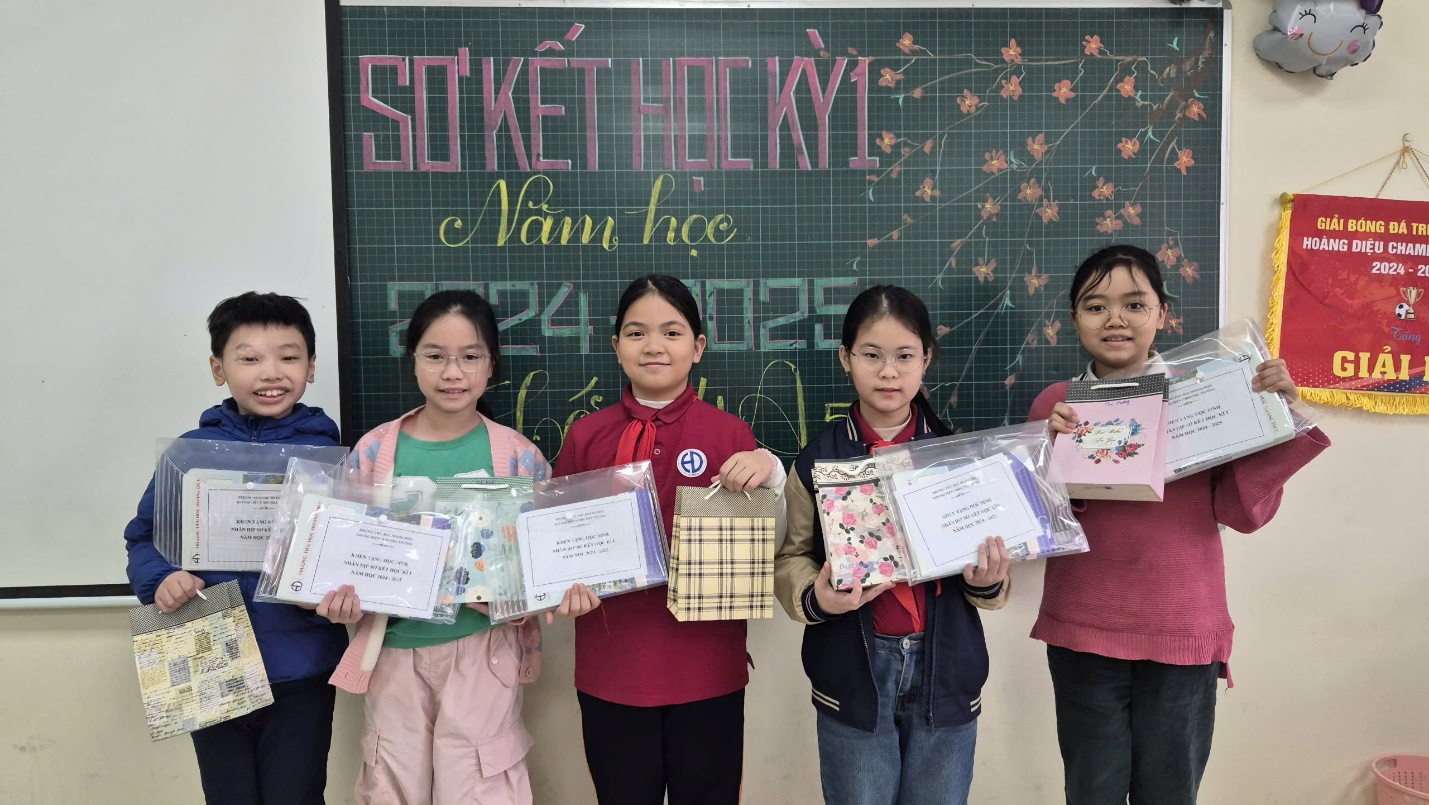 Không thể thiếu trong buổi sơ kết là phần khen thưởng những em học sinh có thành tích xuất sắc trong học tập và các hoạt động phong trào. Những phần thưởng tuy nhỏ nhưng mang ý nghĩa động viên rất lớn, khích lệ tinh thần học tập của các em.