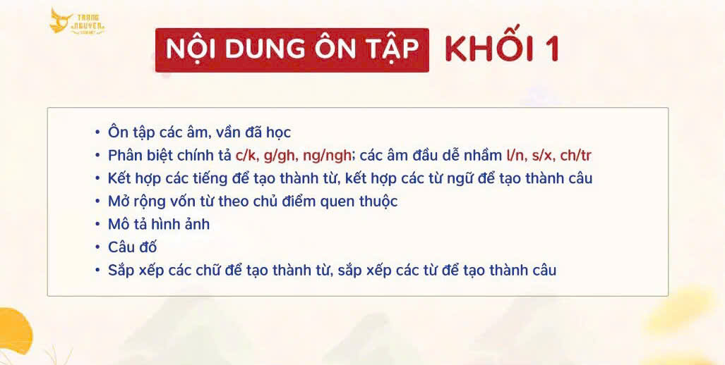 Nội dung ôn tập dành cho học sinh lớp 1 vòng thi Hương - cấp Quận sân chơi Trạng Nguyên Tiếng Việt năm học 2024 - 2025