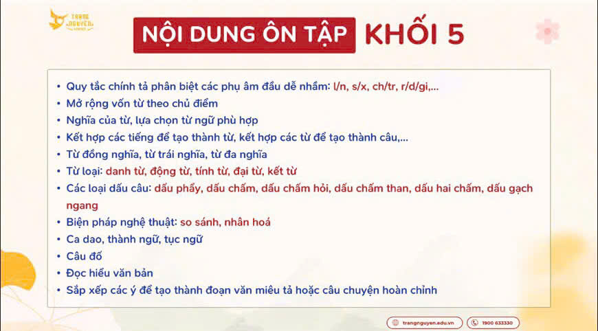 Nội dung ôn tập dành cho học sinh lớp 5 vòng thi Hương - cấp Quận sân chơi Trạng Nguyên Tiếng Việt năm học 2024 - 2025