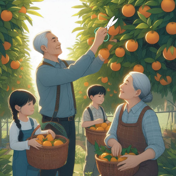 B.Chúng em đang giúp bố mẹ trồng cam.