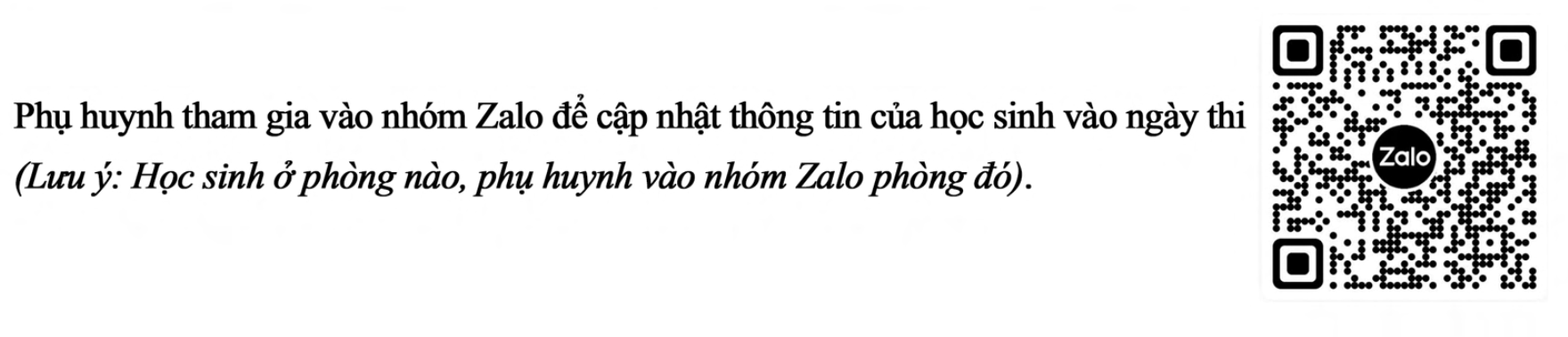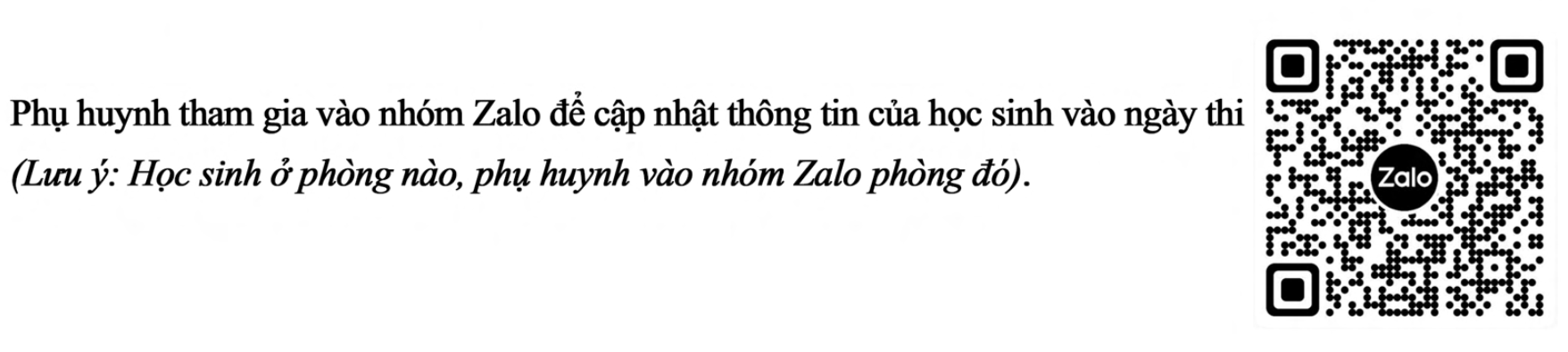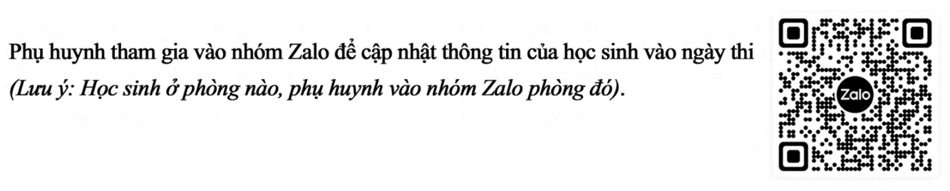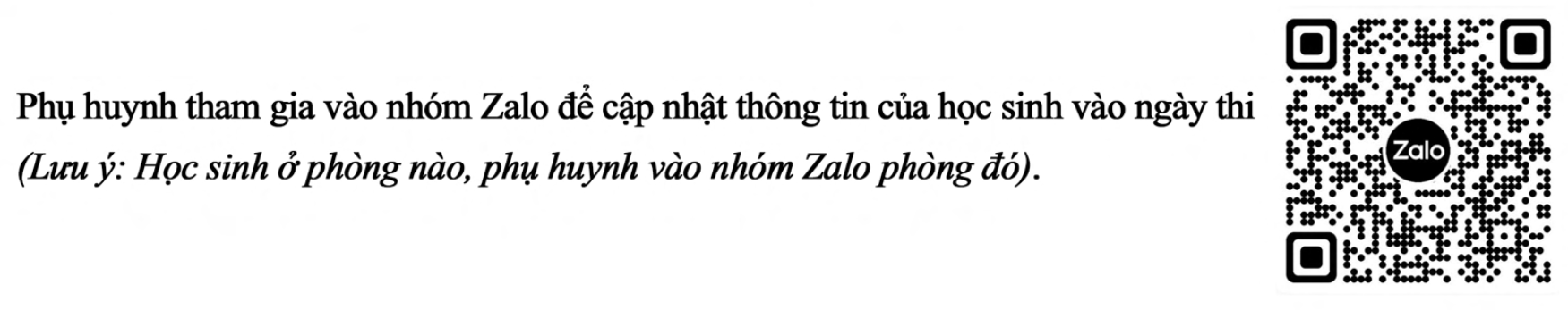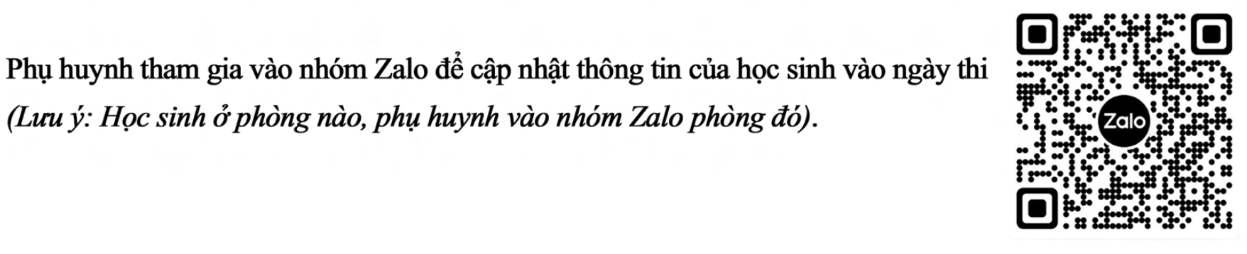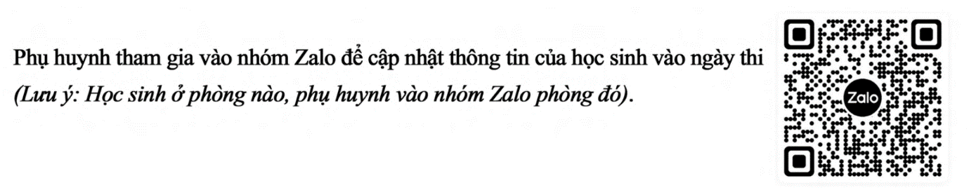 Phụ huynh lưu ý kiểm tra đúng tên học sinh trong danh sách, quét mã QR và tham gia đúng nhóm theo ca thi và phòng thi để nhận thông tin chính xác nhất từ BTC.