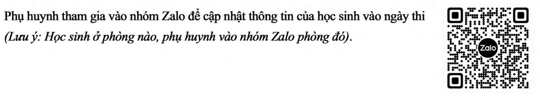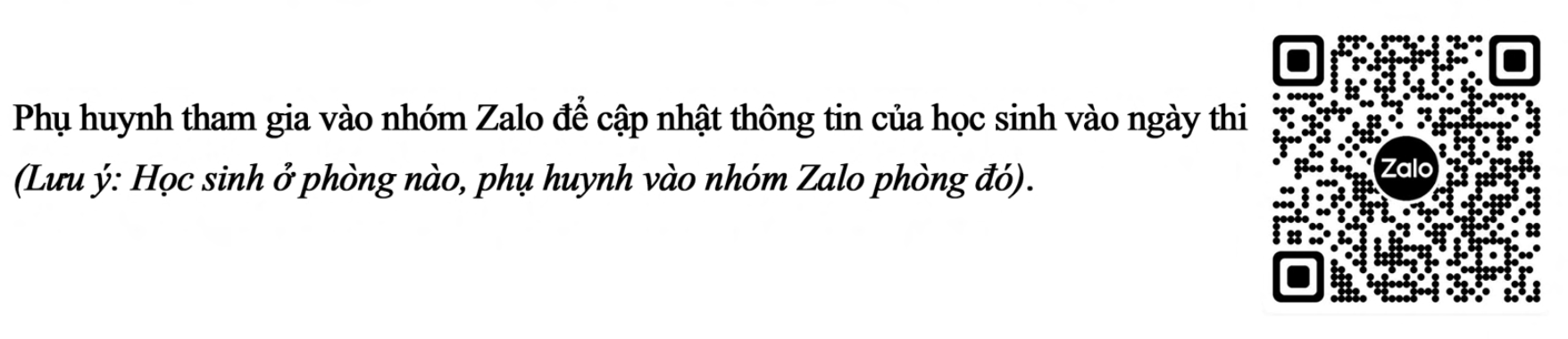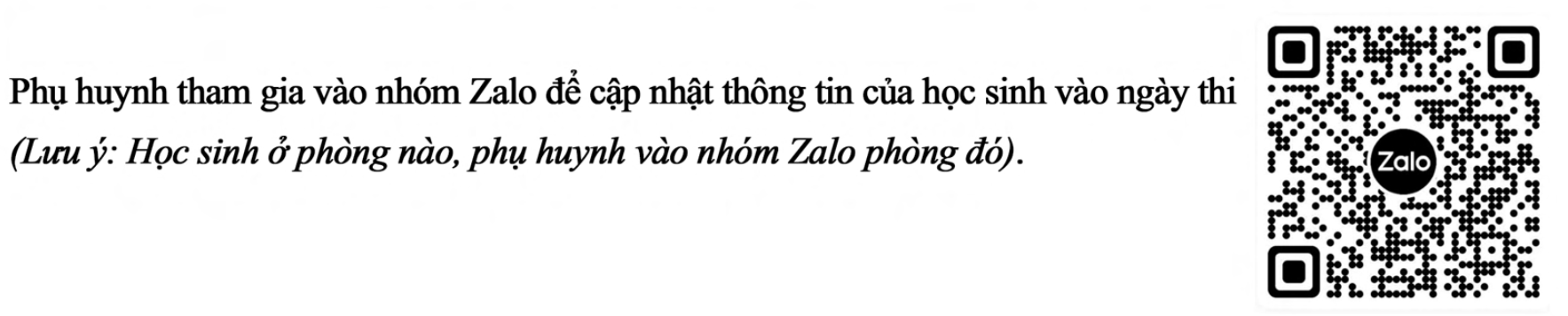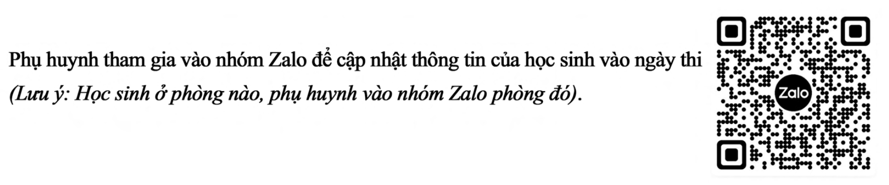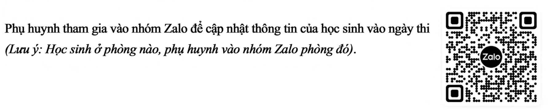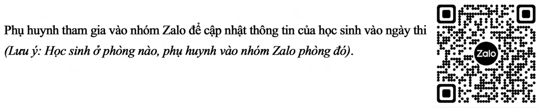 Phụ huynh lưu ý kiểm tra đúng tên học sinh trong danh sách, quét mã QR và tham gia đúng nhóm theo ca thi và phòng thi để nhận thông tin chính xác nhất từ BTC.