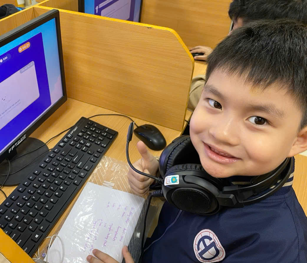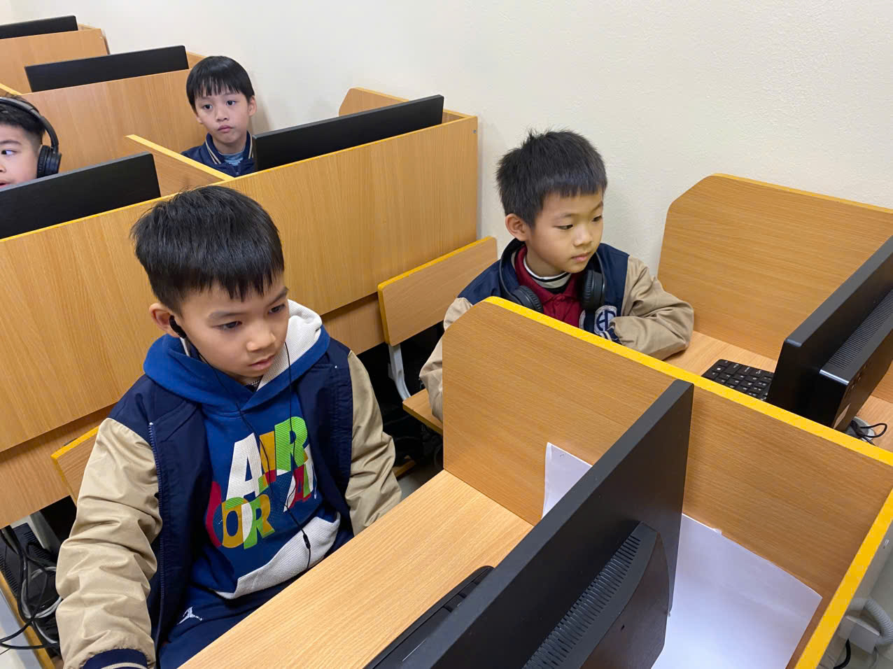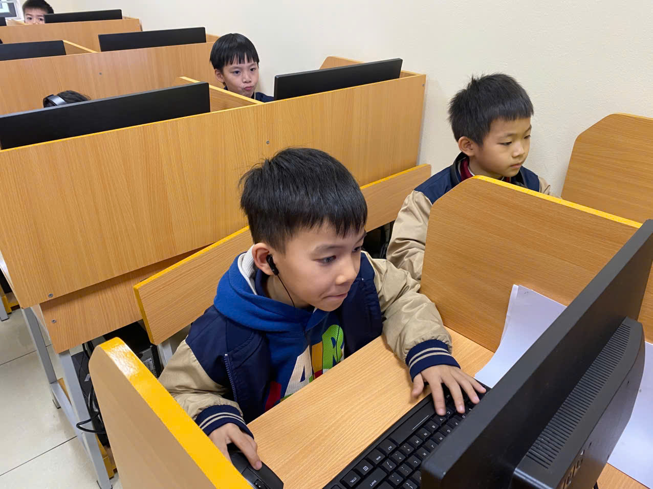 Đúng giờ quy định, các thí sinh nhí háo hức xếp hàng ngay ngắn trước phòng thi, không giấu nổi sự phấn khích nhưng vẫn có chút hồi hộp. Sau khi được các cô giáo hướng dẫn ổn định chỗ ngồi, các em bắt đầu đăng nhập vào hệ thống VioEdu để sẵn sàng cho bài thi.Mỗi học sinh có 20 phút để hoàn thành bài thi, trong đó bao gồm các câu hỏi Toán tư duy và Tiếng Anh với độ khó phù hợp theo năng lực lớp 1. Khi tín hiệu bắt đầu vang lên, cả phòng thi trở nên yên lặng, chỉ còn tiếng gõ bàn phím và ánh mắt chăm chú trên màn hình.