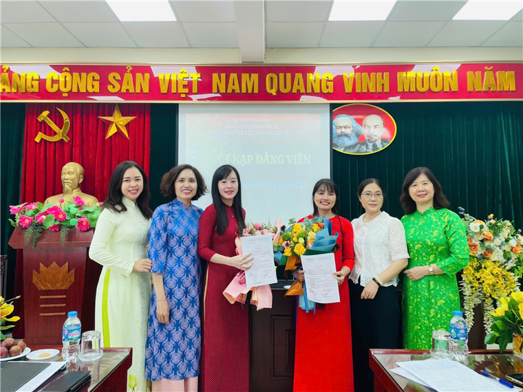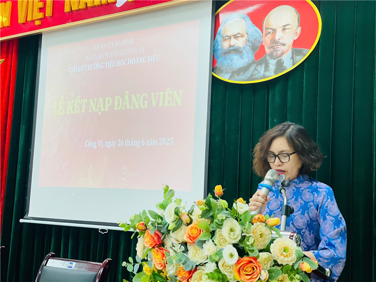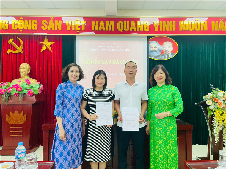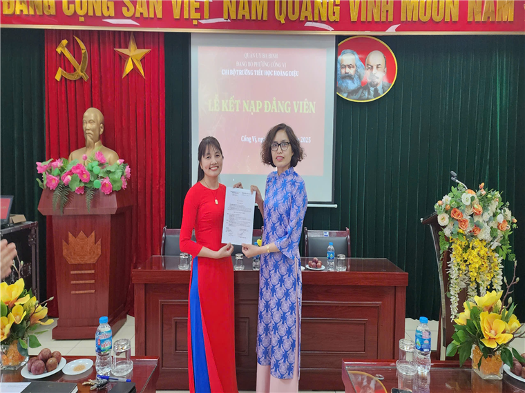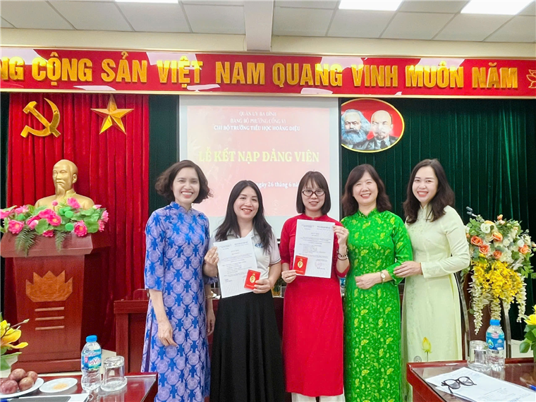 Thực hiện Quyết định của Quận ủy Ba Đình và được sự đồng ý của Đảng ủy phường Cống Vị, ngày 26/6/2025, Chi bộ trường Tiểu học Hoàng Diệu đã long trọng tổ chức Lễ kết nạp Đảng viên mới cho quần chúng ưu tú Nguyễn Thị Yến và Đỗ Thu Hà.
