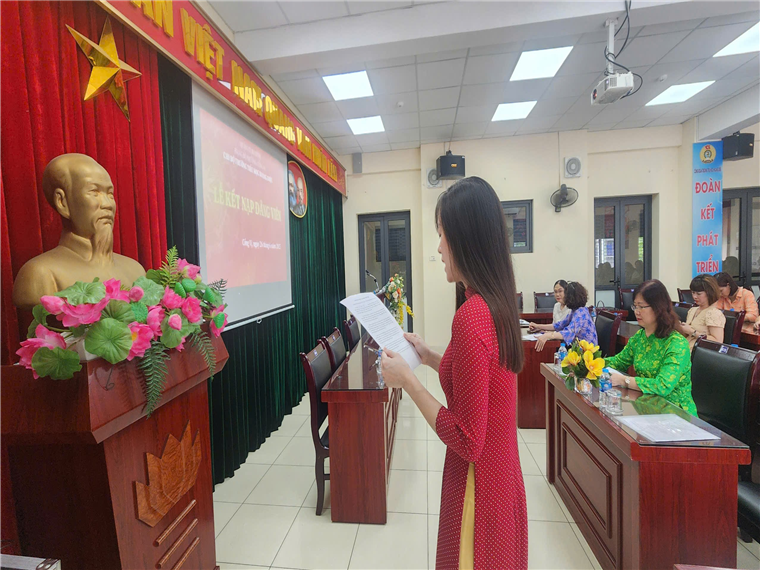Cũng trong buổi lễ Chi bộ nhà trường đã trao quyết định đảng viên chính thức và thẻ đảng cho các đồng chí Nguyễn Thanh Bình, Phạm Thị Loan, Bùi Thị Hương và Nguyễn Văn Khương.