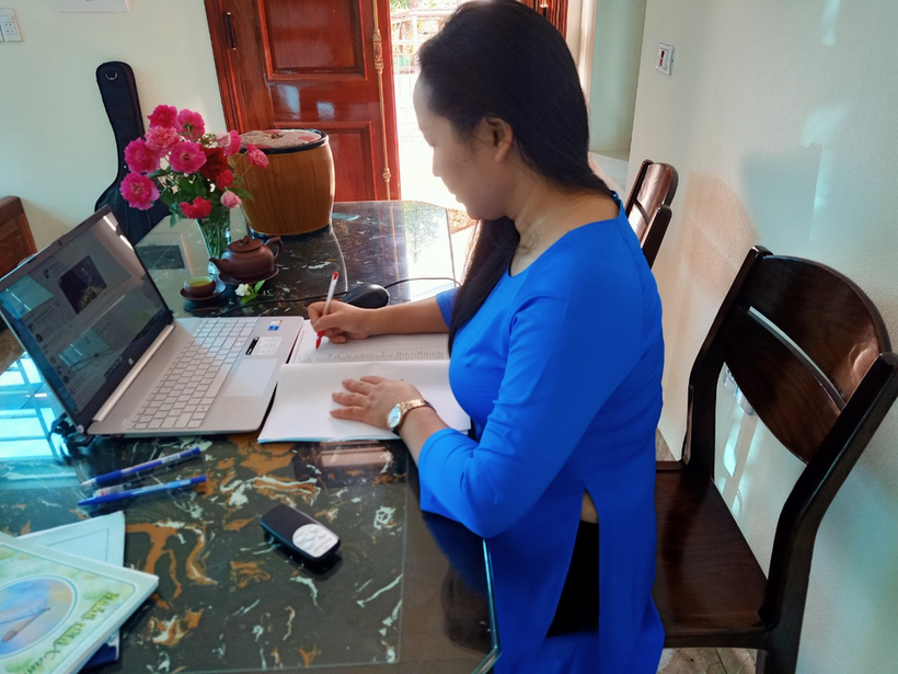 Cô Đỗ Thị Nga trong giờ dạy học trực tuyến phòng chống covid 19