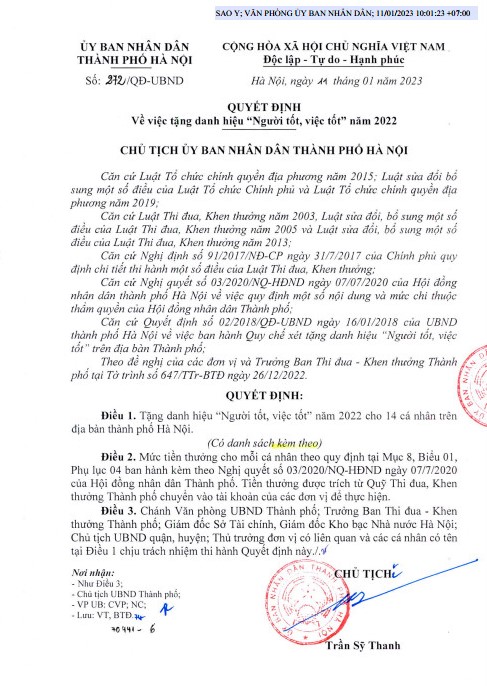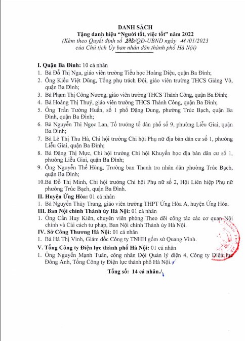 Với những tâm huyết và thành tích nổi bật trên, cô Nga đã được Chủ tịch UBND thành phố Hà Nội tặng danh hiệu “ Người tốt, việc tốt” năm 2022.