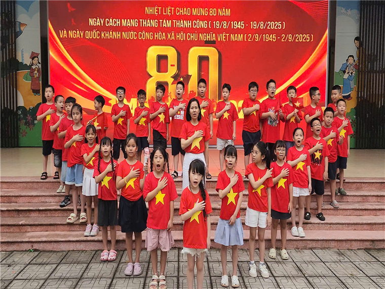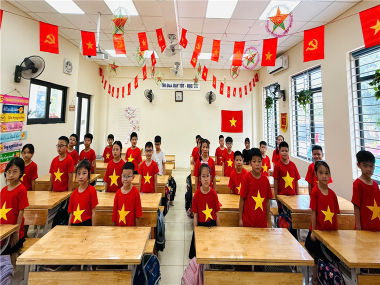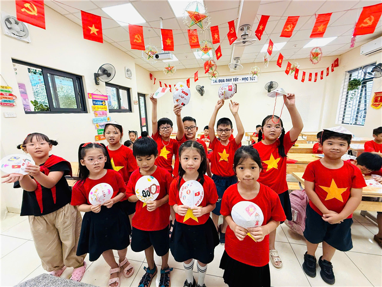Các em được tìm hiểu về ngày Tuyên ngôn Độc lập lịch sử, thi hát Quốc ca, tham gia các hoạt động trải nghiệm chủ đề “Tổ quốc trong trái tim em”. Qua đó, học sinh thêm hiểu biết về truyền thống dân tộc, nuôi dưỡng niềm tự hào và trách nhiệm với Tổ quốc.