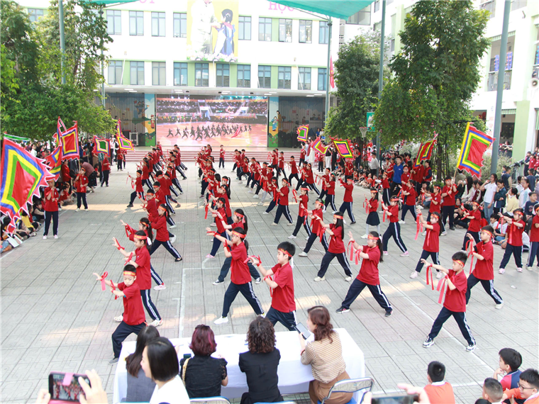 Không chỉ là một hoạt động thể thao, tiết mục đồng diễn còn mang ý nghĩa giáo dục sâu sắc, giúp các em rèn luyện sức khỏe, tinh thần kỷ luật, sự đoàn kết và lòng tự hào về truyền thống vẻ vang của Đoàn TNCS Hồ Chí Minh. Nhìn những gương mặt rạng rỡ, ánh mắt sáng ngời của các em sau phần trình diễn, thầy cô và phụ huynh không khỏi tự hào và tin tưởng vào thế hệ măng non đầy nhiệt huyết. Dưới đây là một số hình ảnh của ngày hội: