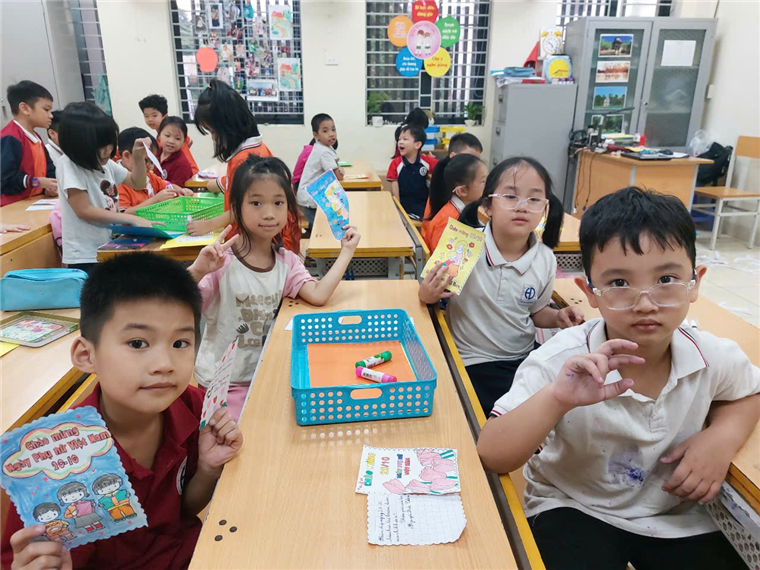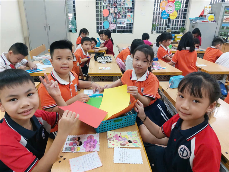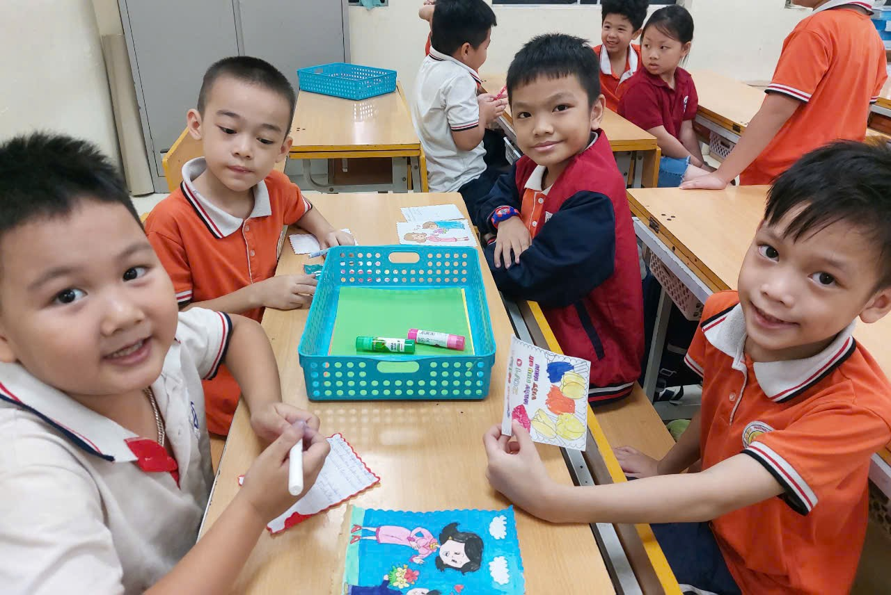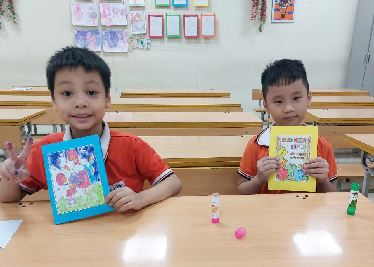 Nhân dịp ngày Phụ nữ Việt Nam 20/10 tập thể lớp 2A1 đã được trải nghiệm làm thiệp chúc mừng trong tiết học Stem. Chỉ bằng những vật liệu đơn giản như kéo, giấy, bút màu,.. các bạn đã có thể thoải mái vẽ theo trí tưởng tượng của mình, tạo ra một tấm thiệp độc đáo.