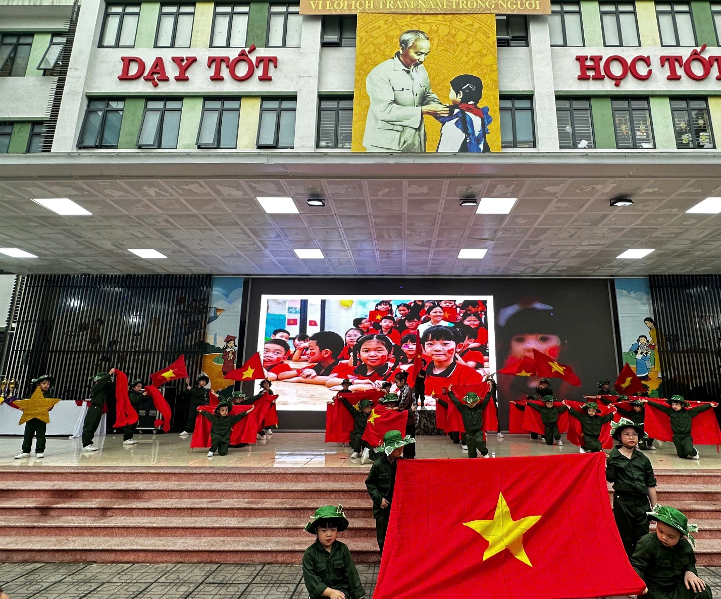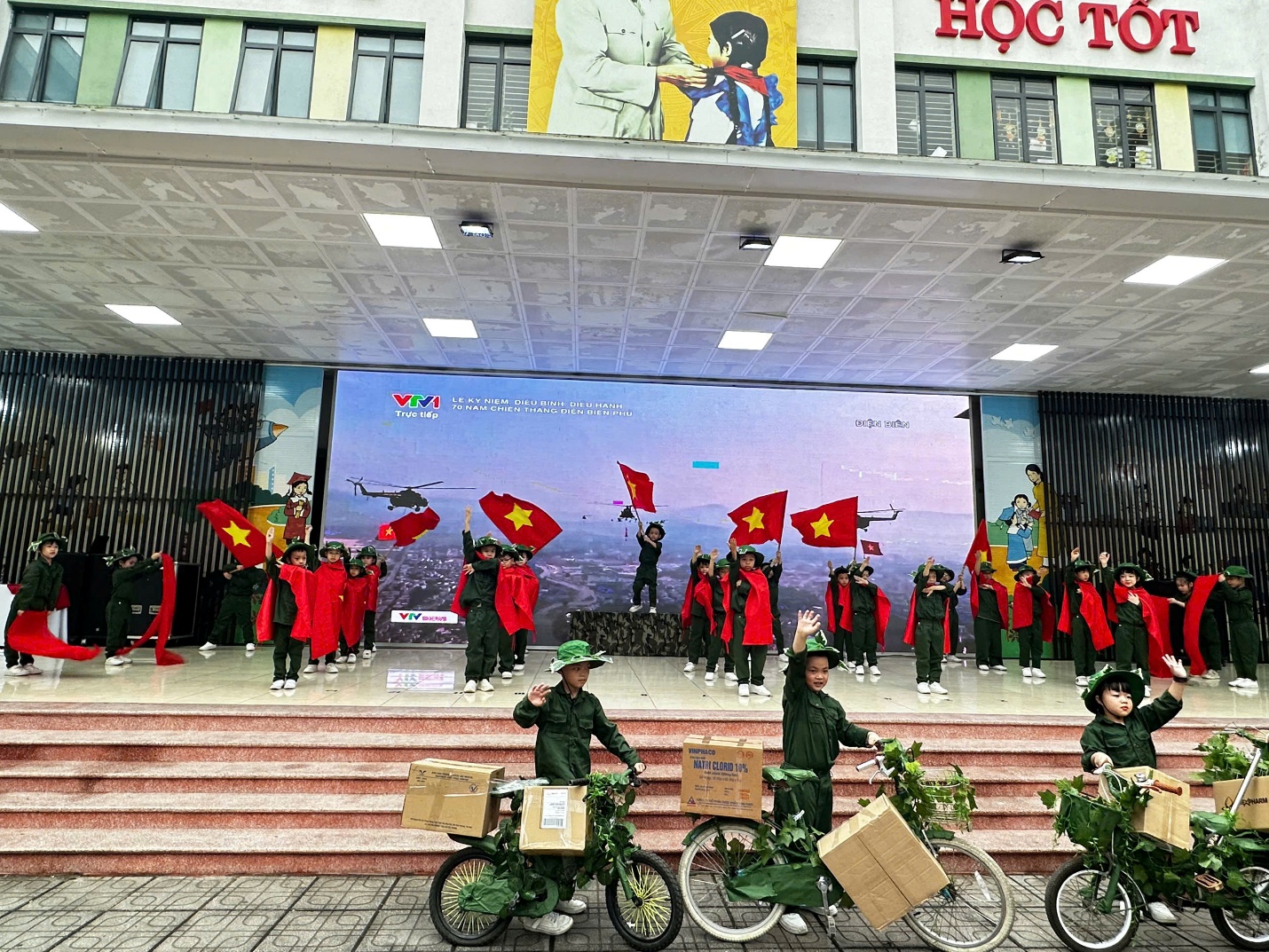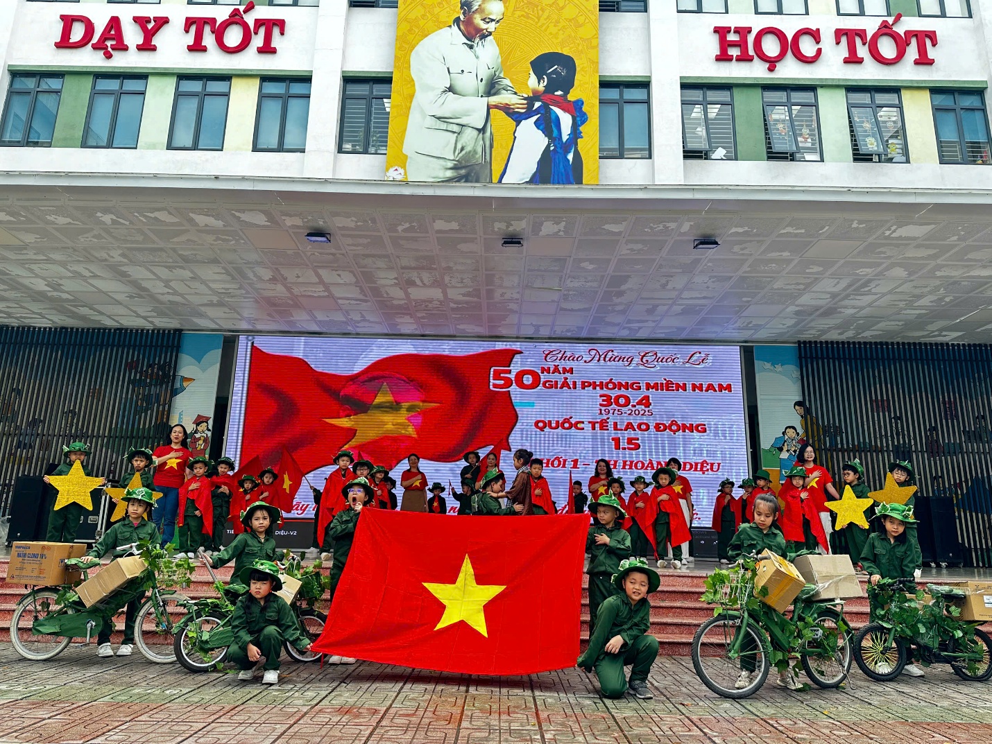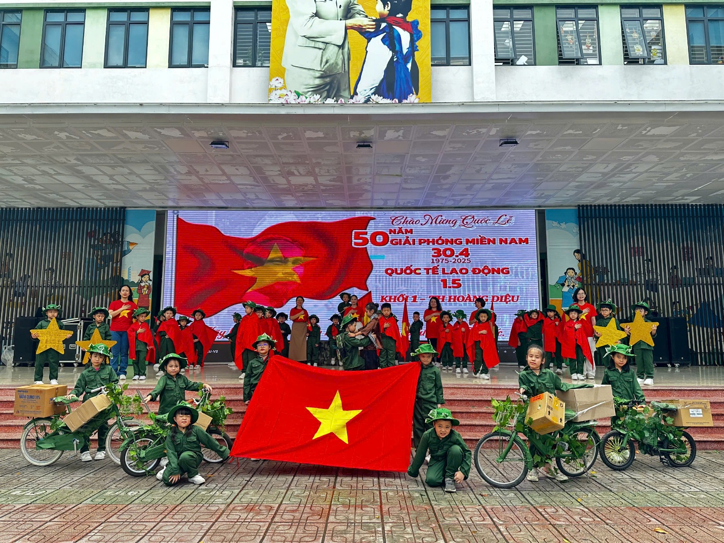 Ngày 29/4 vừa qua, tại trường tiểu học Hoàng Diệu, các bạn học sinh khối 1 đã cùng nhau thể hiện tiết mục hoạt cảnh đầy ý nghĩa với bài hát "Khát vọng ngày trở về". Buổi biểu diễn không chỉ là một món quà tinh thần mà còn là dịp để các em nhỏ thể hiện niềm yêu quê hương, đất nước và khát khao cống hiến cho sự nghiệp bảo vệ và xây dựng Tổ quốc.