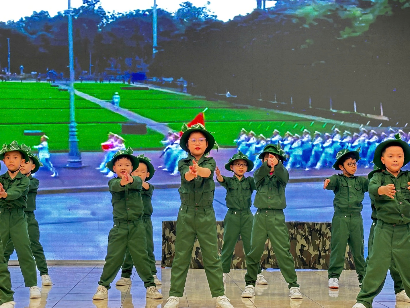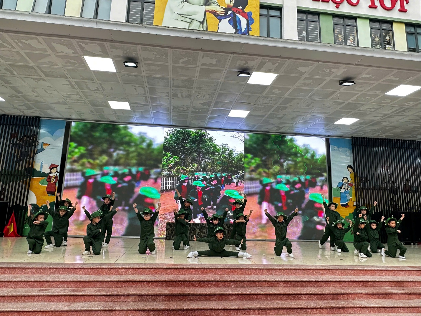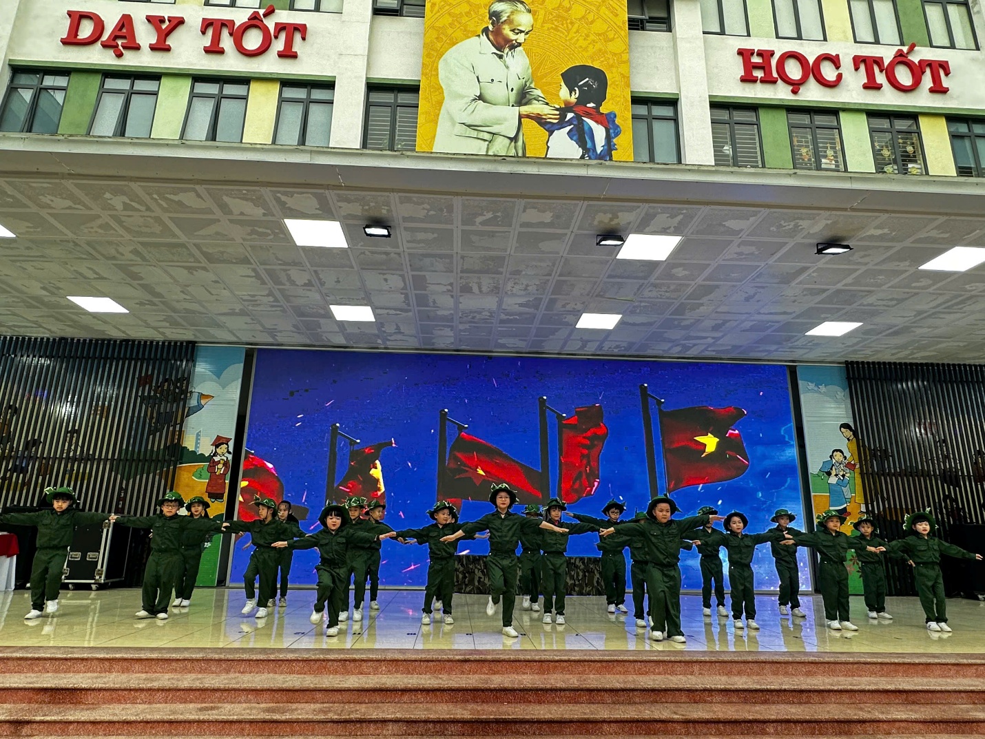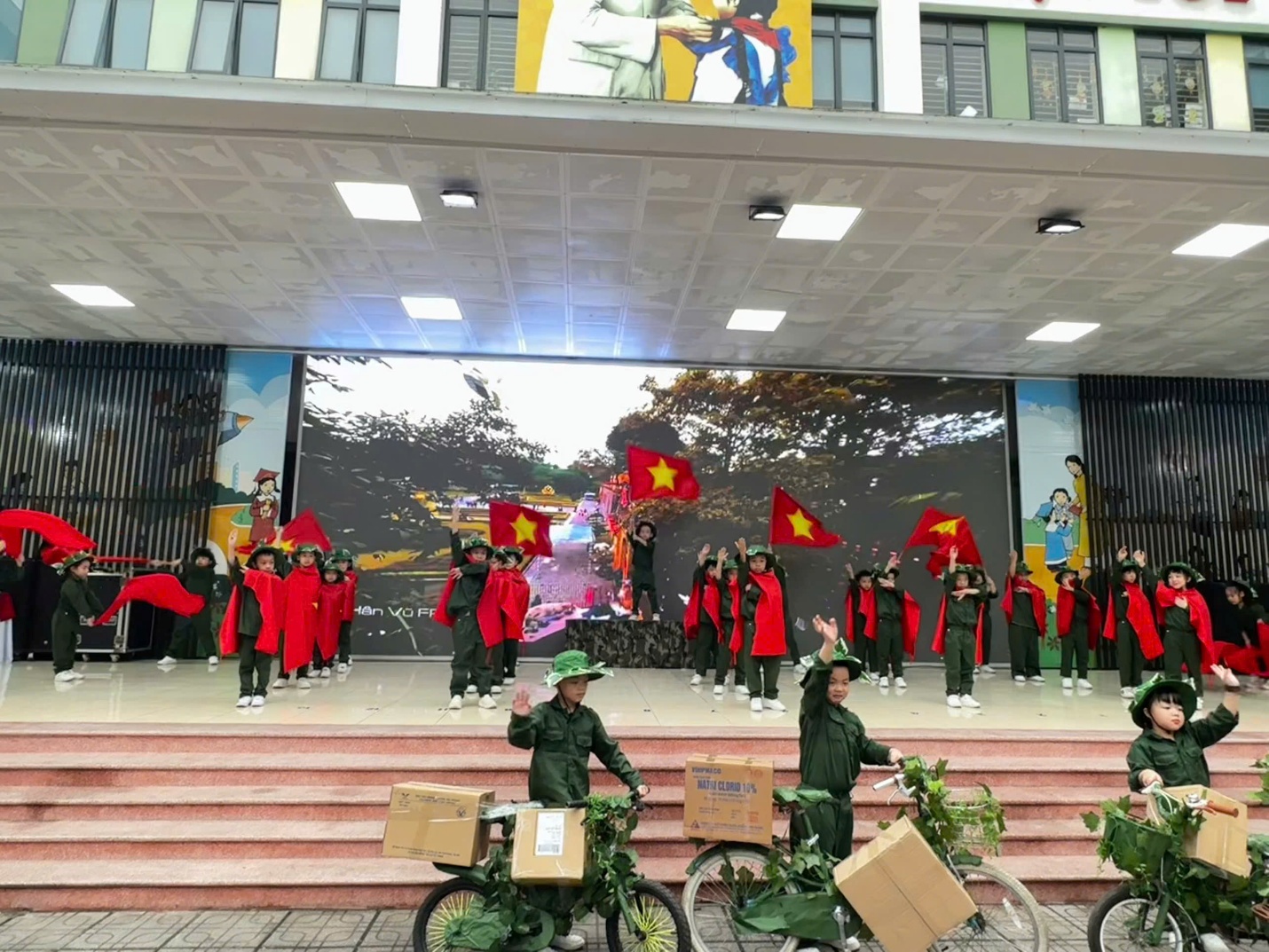 Giữa không gian bao la của sân trường, màn trình diễn đã làm bừng lên một không khí ngập tràn cảm xúc. Các em nhỏ không chỉ tái hiện một cách chân thật hình ảnh những người lính kiên cường trên con đường chiến đấu bảo vệ Tổ quốc mà còn mang đến cho khán giả những cảnh tượng tuyệt đẹp về tương lai tươi sáng. Mỗi động tác múa, mỗi tiếng hát, mỗi bước đi đều chứa đựng sức mạnh của lòng kiên định và quyết tâm vươn tới những ước mơ, khát vọng.