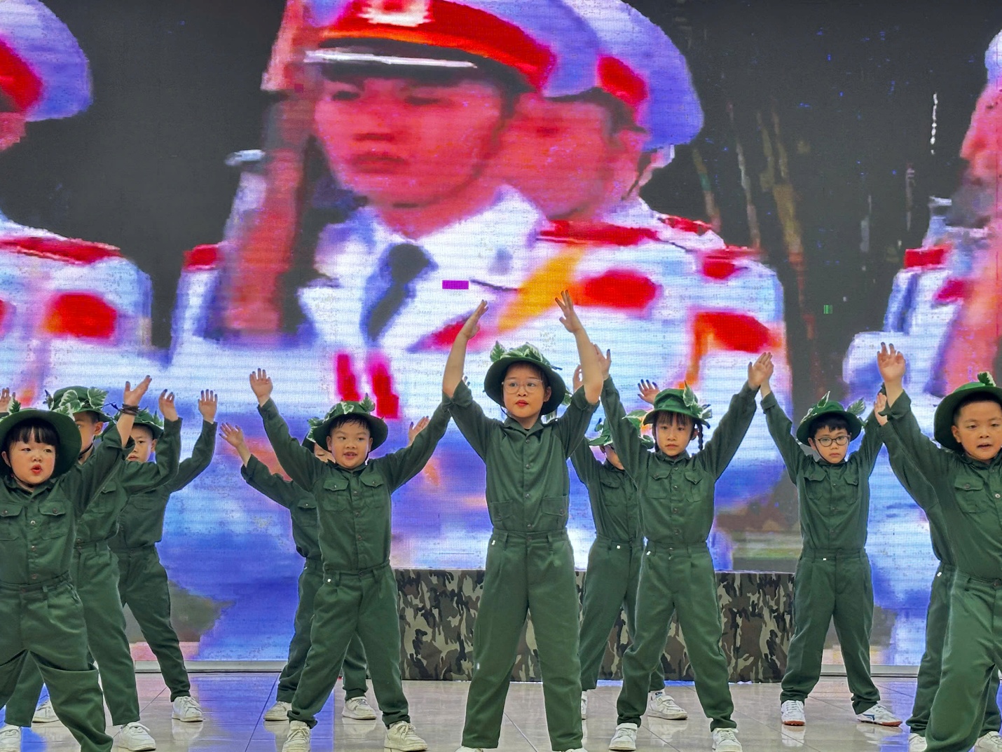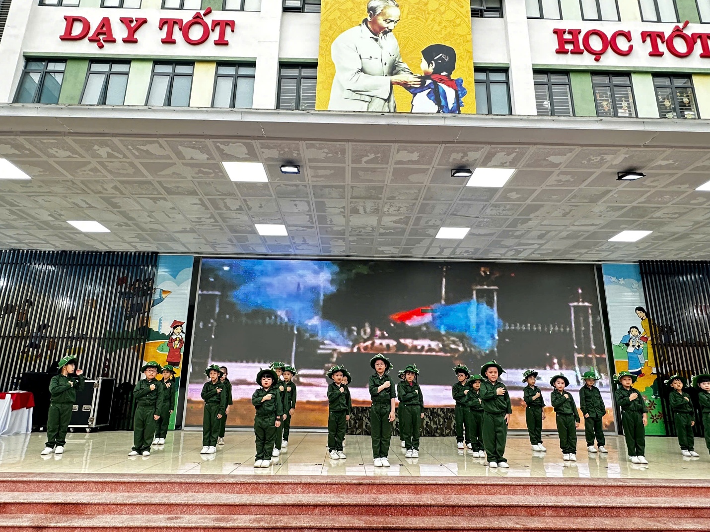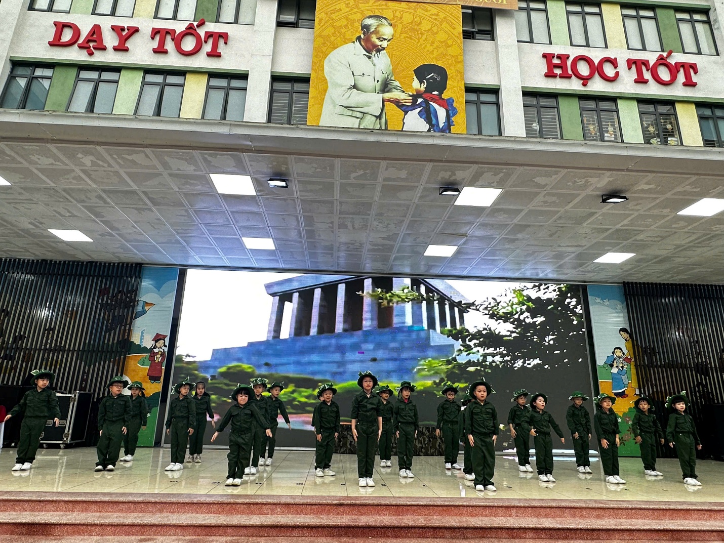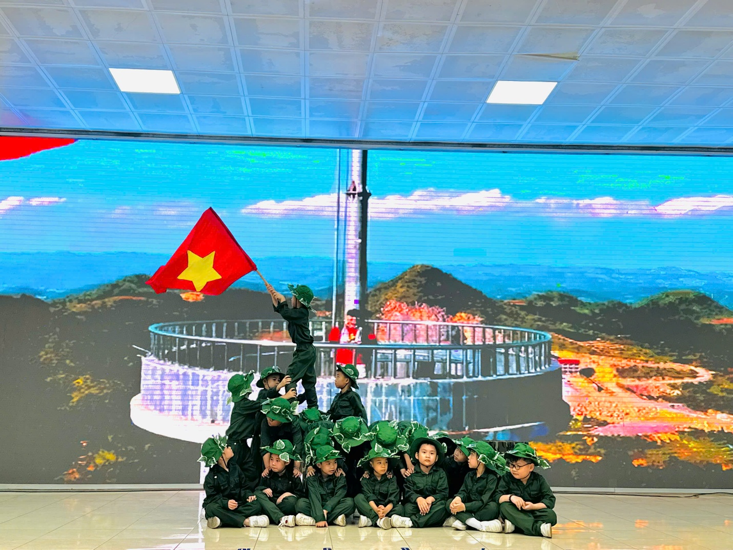 Giữa không gian bao la của sân trường, màn trình diễn đã làm bừng lên một không khí ngập tràn cảm xúc. Các em nhỏ không chỉ tái hiện một cách chân thật hình ảnh những người lính kiên cường trên con đường chiến đấu bảo vệ Tổ quốc mà còn mang đến cho khán giả những cảnh tượng tuyệt đẹp về tương lai tươi sáng. Mỗi động tác múa, mỗi tiếng hát, mỗi bước đi đều chứa đựng sức mạnh của lòng kiên định và quyết tâm vươn tới những ước mơ, khát vọng.