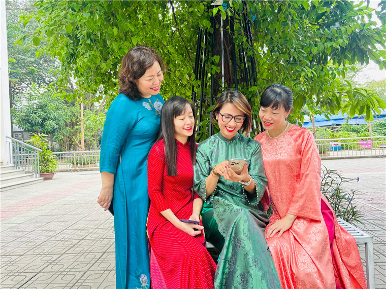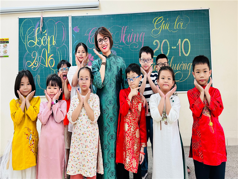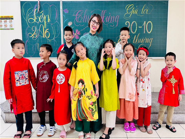 Sau đây là một số hình ảnh xinh đẹp của cô giáo và các con học sinh trong tà áo dài: