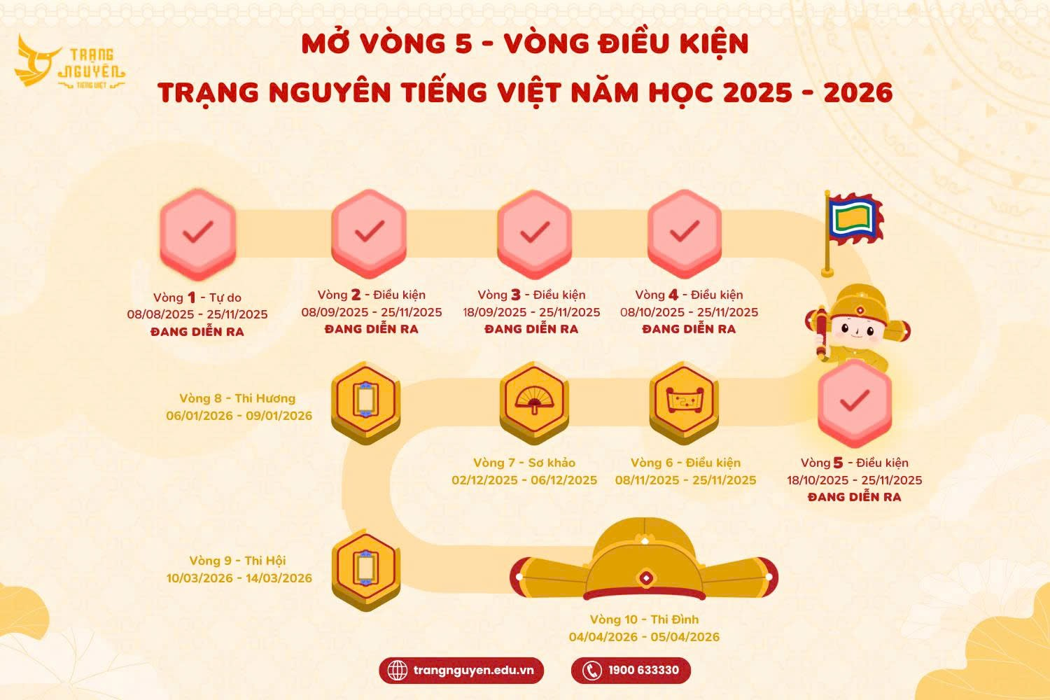 📍 Lưu ý: Học sinh cần tham dự đủ các vòng điều kiện (từ vòng 2 đến vòng 6) trước ngày 25/11/2025 để đủ điều kiện bước tiếp vào vòng Sơ khảo.