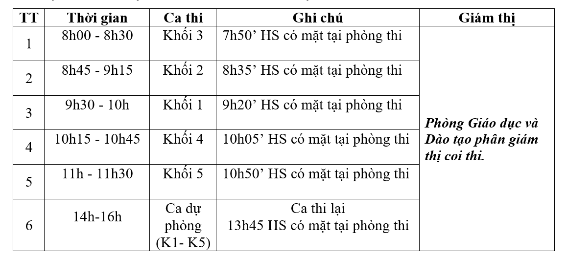 - Học sinh tuân thủ thời gian làm bài và lịch thi theo quy định.