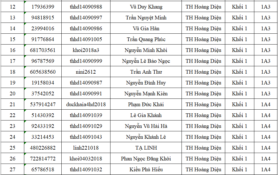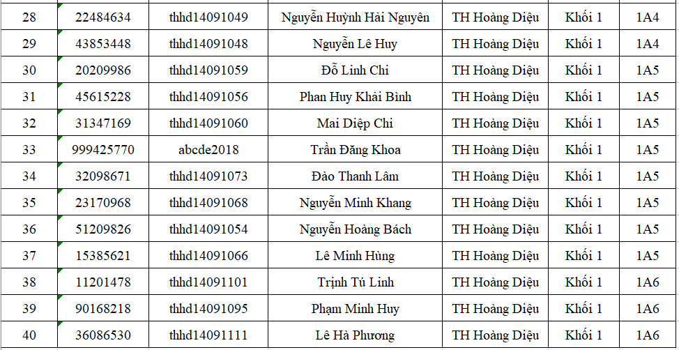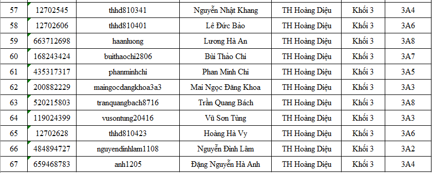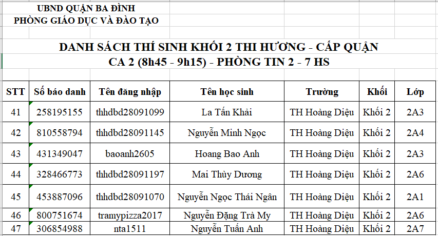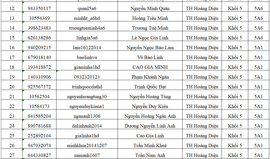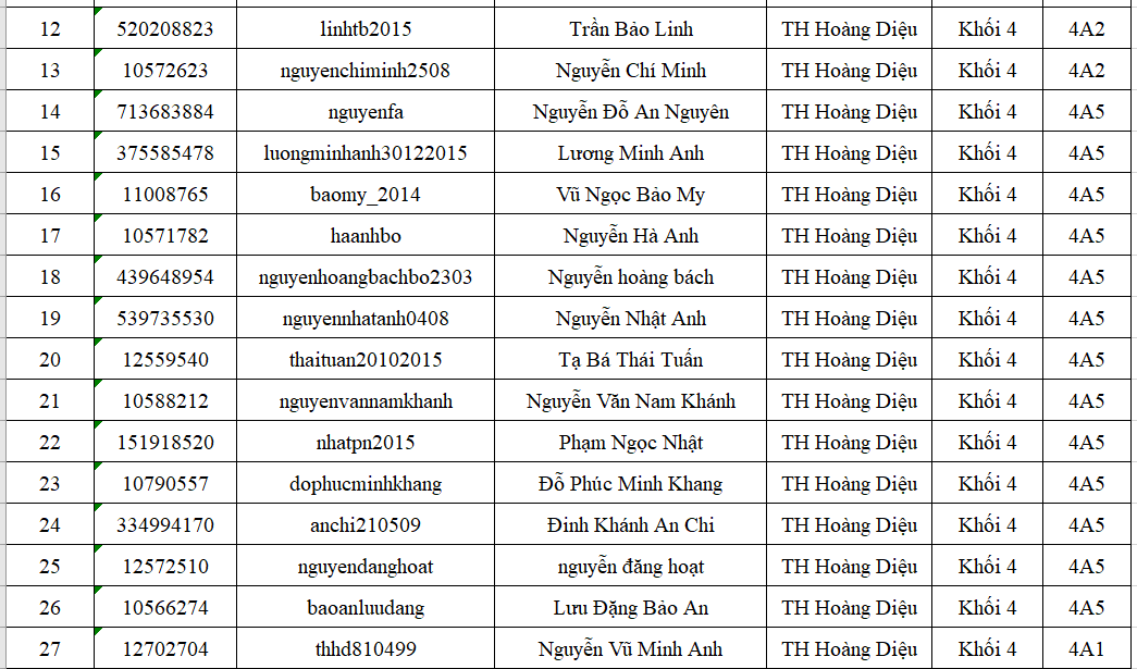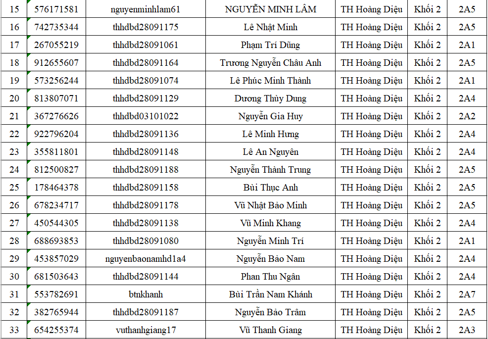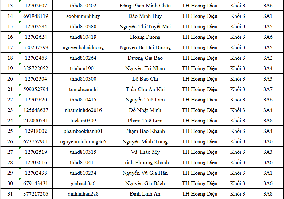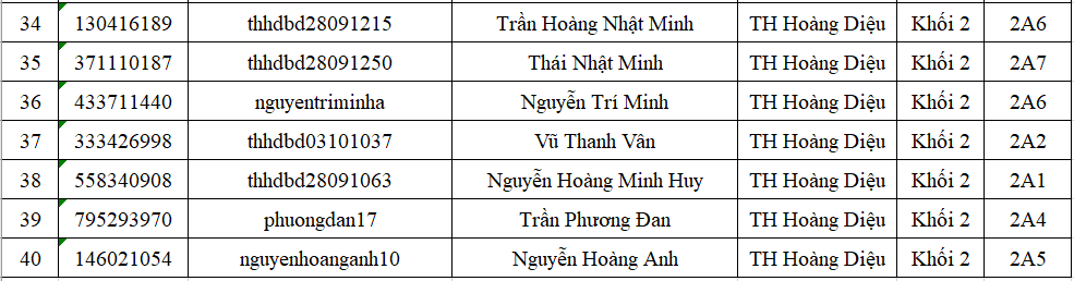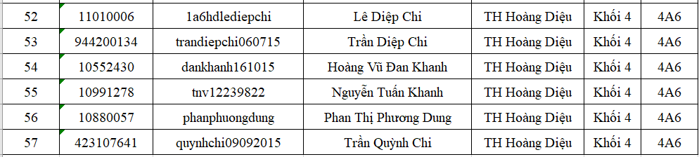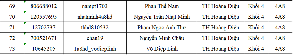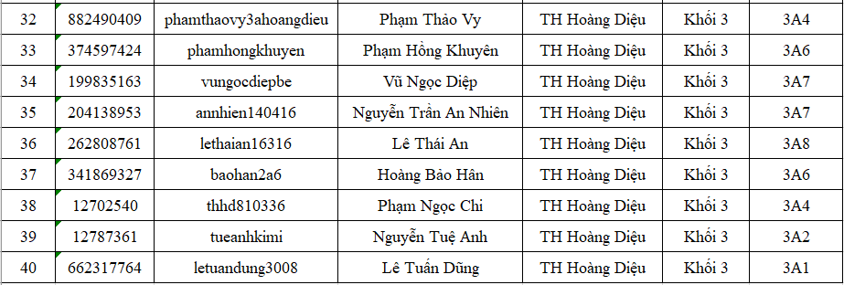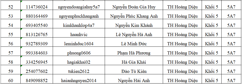 7. Danh sách học sinh tham dự vòng thi Hương cấp Quận sân chơi Trạng Nguyên Tiếng Việt năm học 2024 - 2025